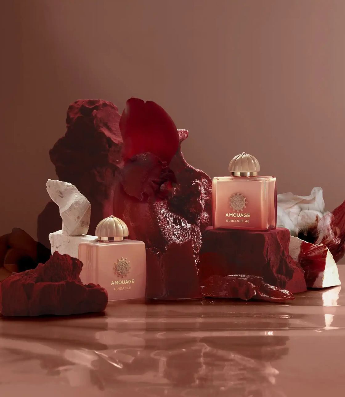Guidance 46 là bản “nâng cấp vượt bậc” của Guidance nguyên bản, tái hiện bộ ba huyền thoại Amouage: Hoa hồng – Nhũ hương – Long diên hương, đồng thời bổ sung lê mọng nước, hạt dẻ bùi ngậy và gỗ đàn hương kem béo để tạo độ tương phản mãnh liệt, sâu lắng và bí ẩn hơn. Chai được ủ (maturation + maceration) tổng cộng 4 tuần để các tầng hương hòa quyện hoàn hảo.