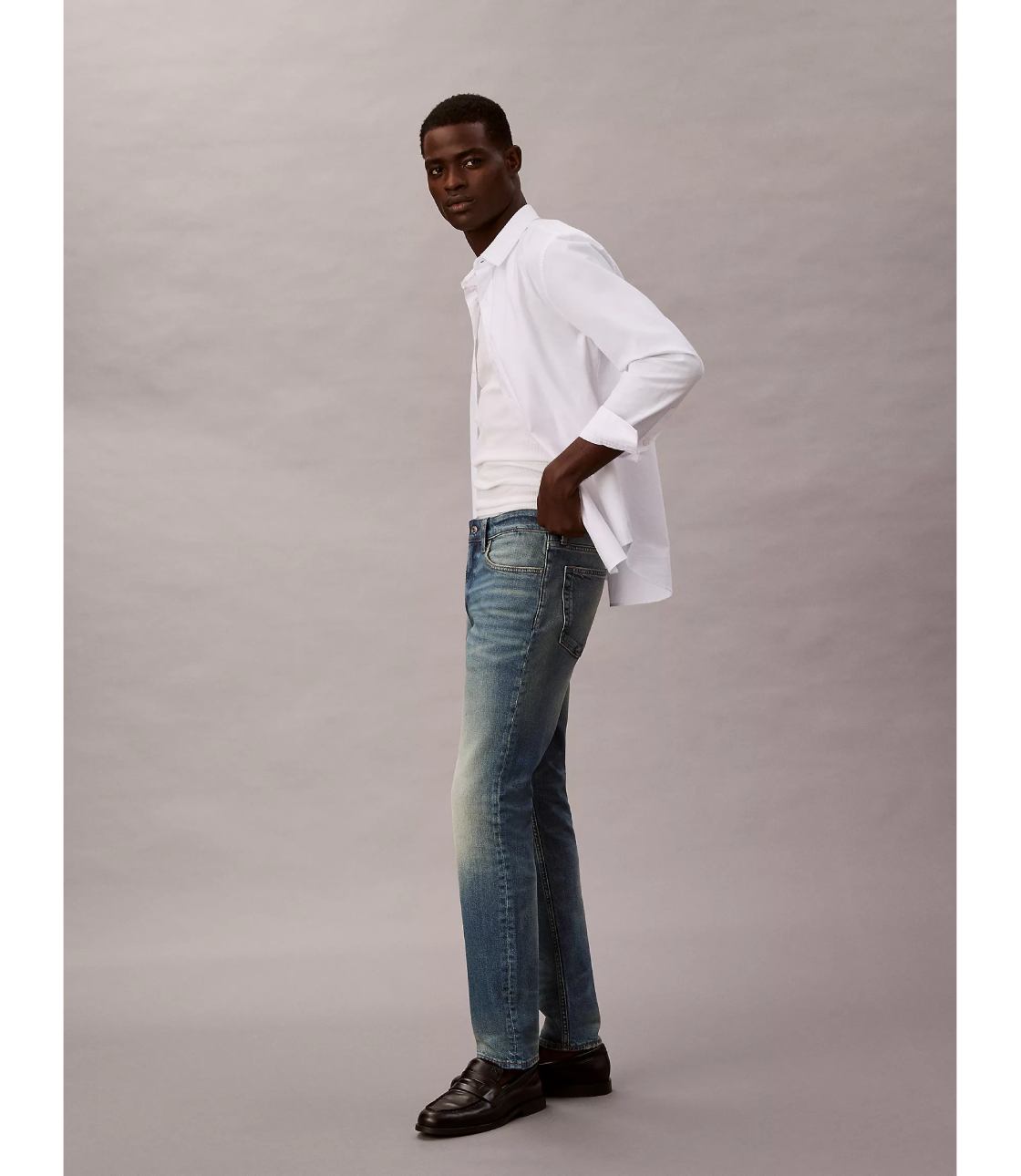Quần Jeans phom Slim Fit ống ôm co giãn, dễ mặc, trẻ trung. Chất vải co dãn dễ chịu khi vận động, chất jeans dày dặn chuẩn dáng. Tag da được thiết kế nâng tầm sản phẩm.