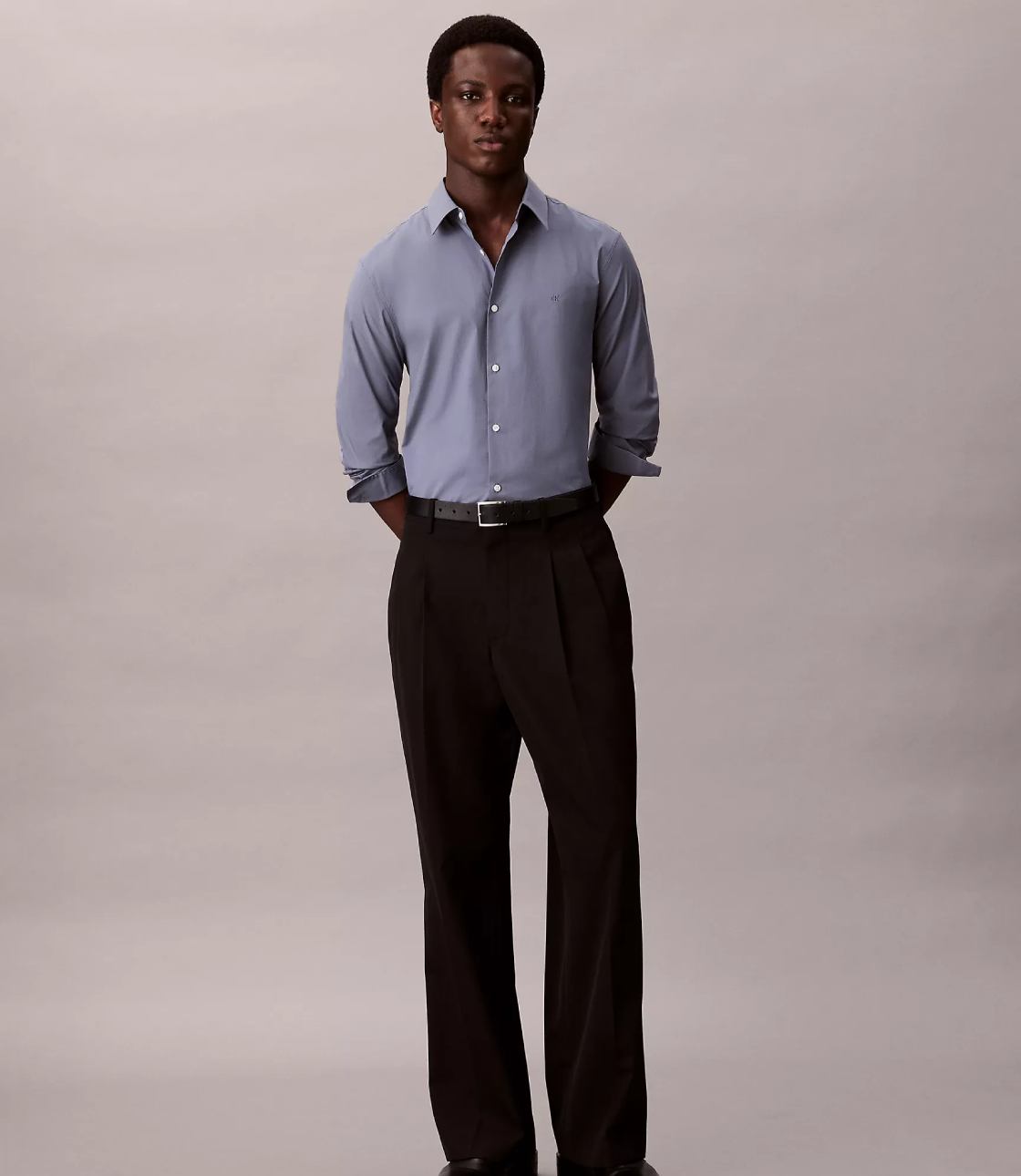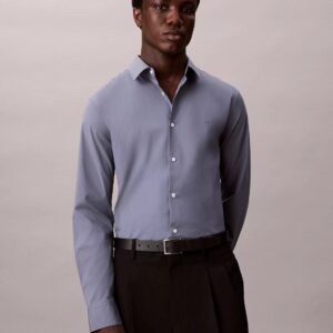 Phom Slim Fit mặc ôm tôn dáng, sơ mi hoạ tiết trơn đơn giản nhẹ nhàng, phù hợp với mọi lứa tuổi. Logo ” CK ” thêu trên ngực áo.