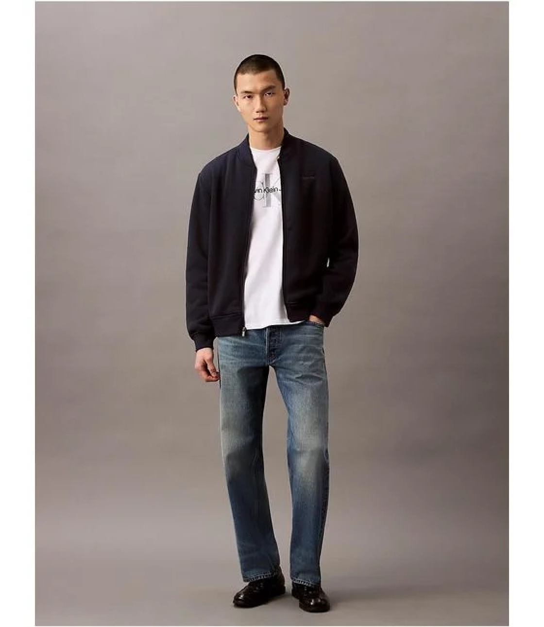 • Logo thương hiệu “CK” thêu nổi bên trái ngực áo
