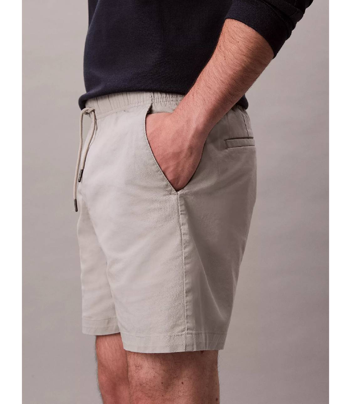 Quần short kaki với chất vải trơn mịn co giãn dễ mặc, tạo cảm giác thoải mái khi mặc. Quần dài 6 inch trên gối, lưng thun co giãn thoải mái