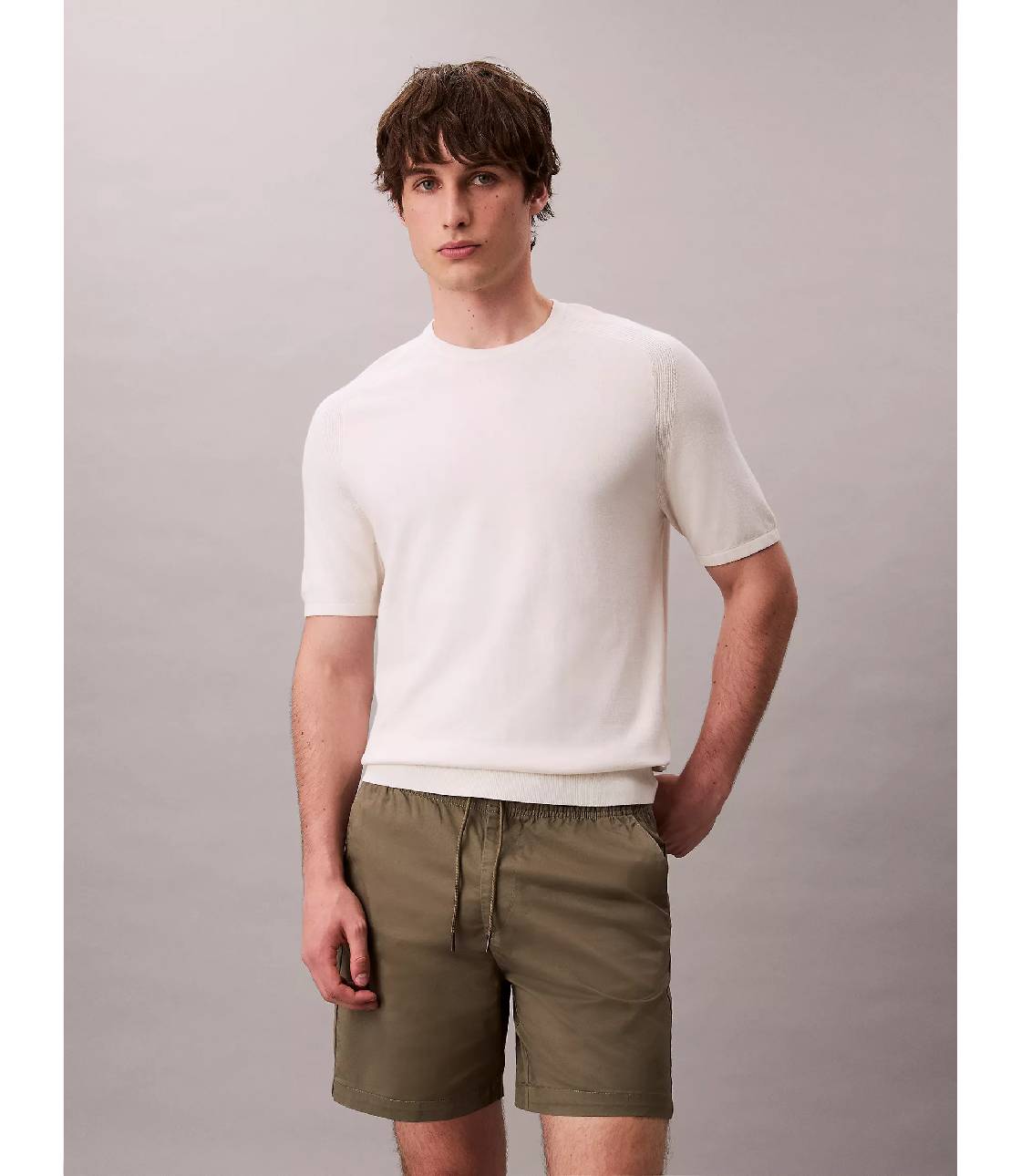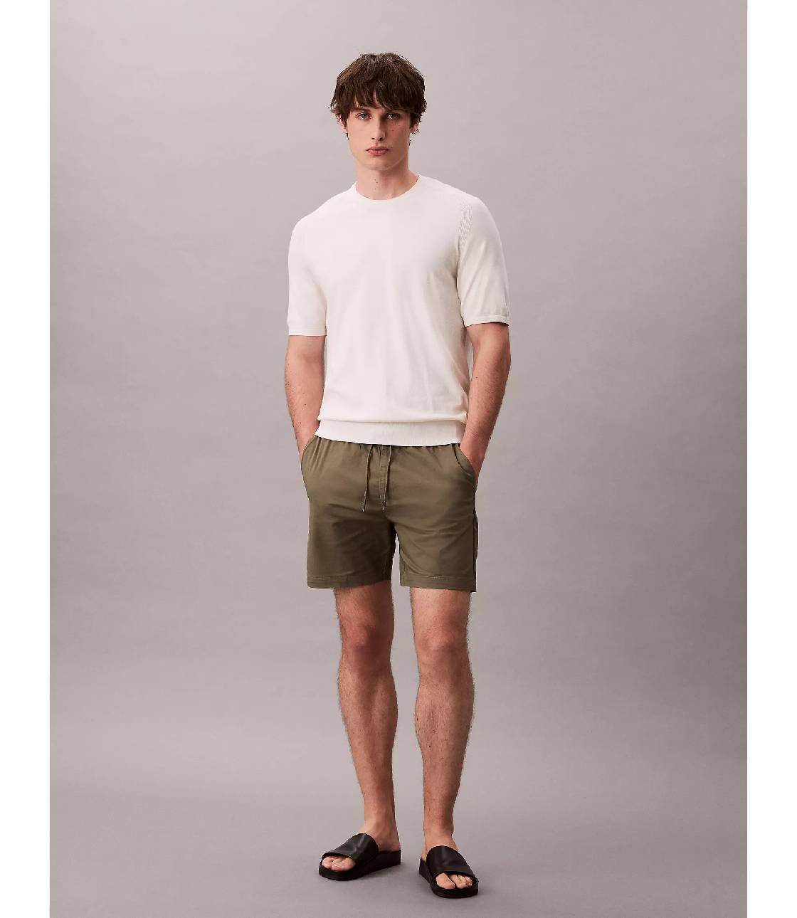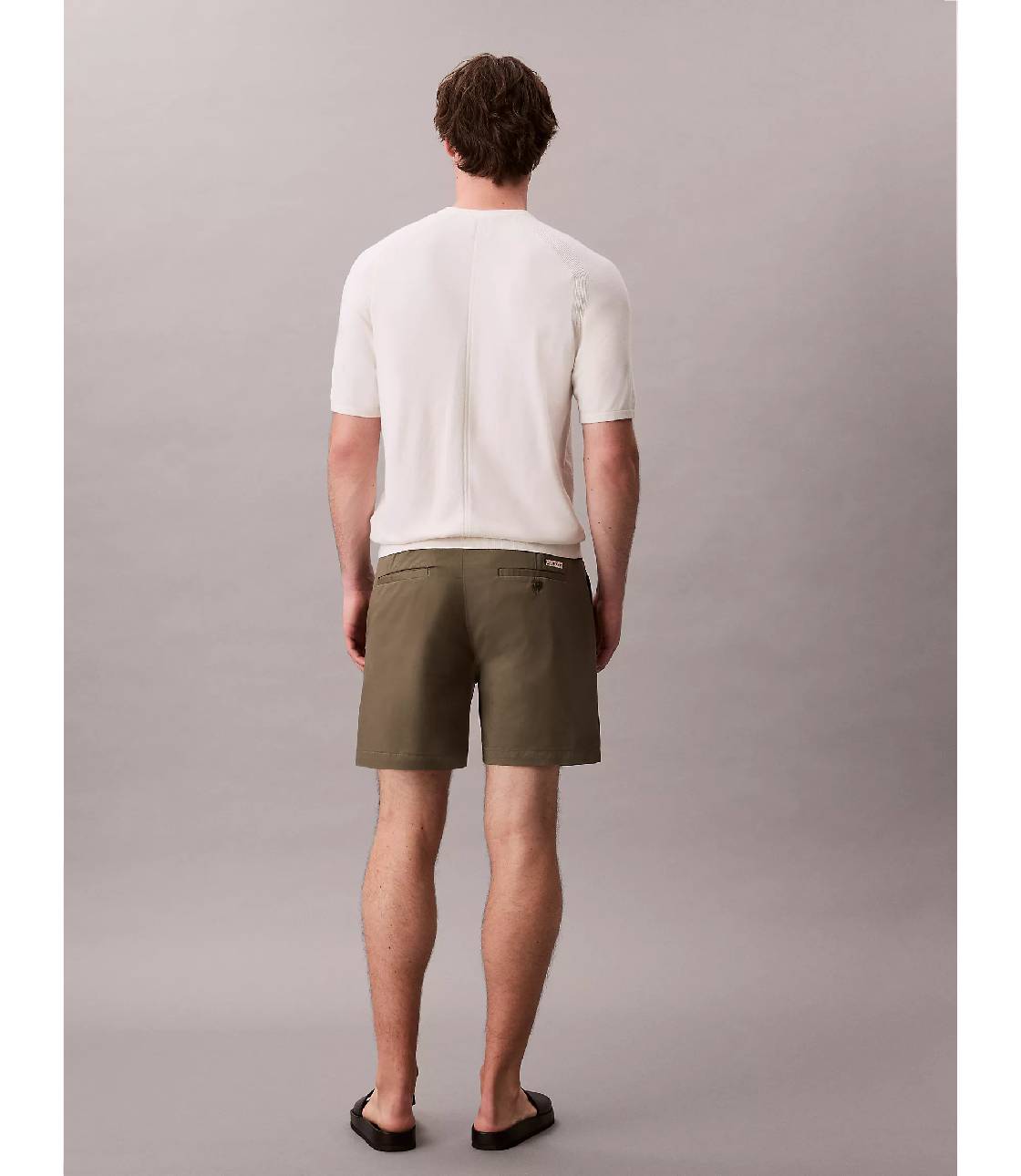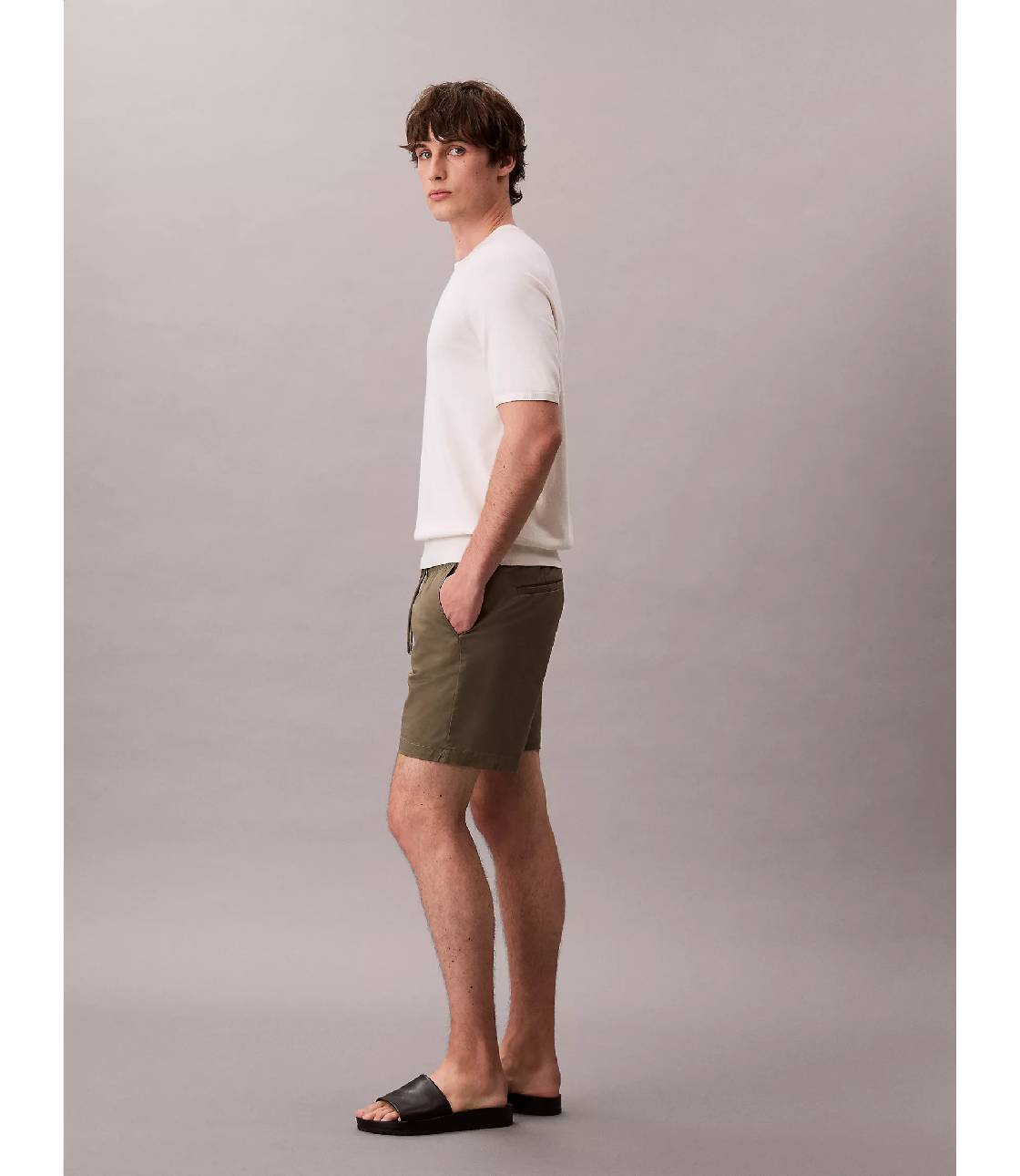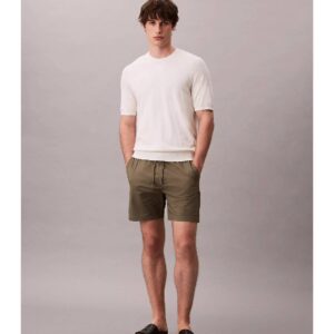 Quần short kaki với chất vải trơn mịn co giãn dễ mặc, tạo cảm giác thoải mái khi mặc. Quần dài 6 inch trên gối, lưng thun co giãn thoải mái