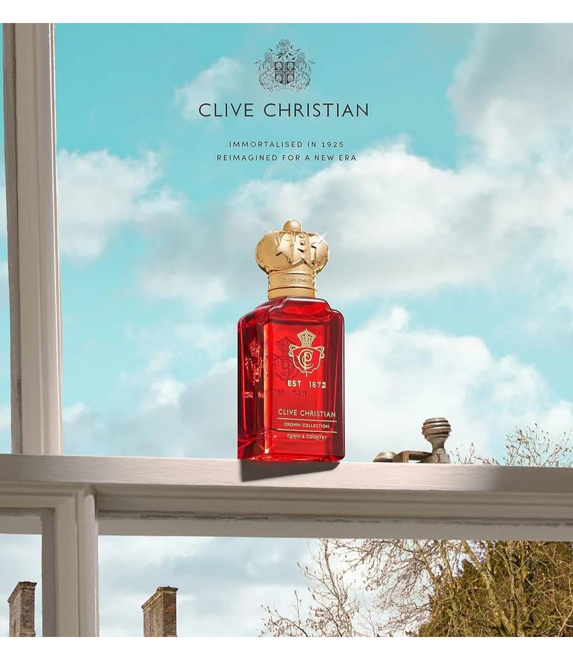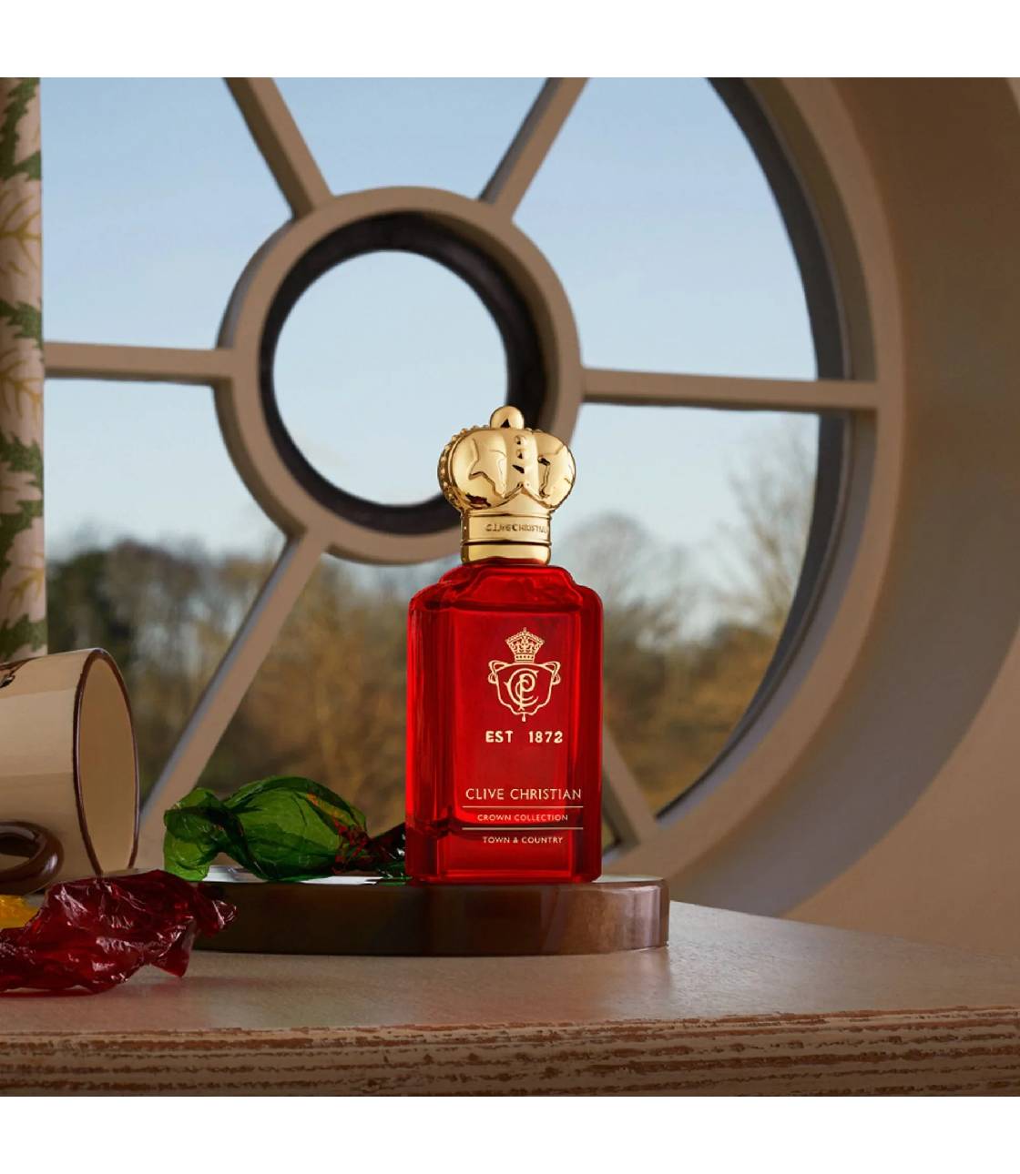 Clive Christian Town Country EDP với sự mở đầu sảng khoái và sôi động của hương cam chanh và cây bách xù, nó bắt đầu gần như một loại cocktail citric có hương thơm ngon ngọt. Làm nền cho hương thảo mộc từ cây xô thơm xuất hiện ngay sau đó, hơi bột và có màu xanh lục, trước khi nhường chỗ cho những nốt hương phức tạp hơn. Tiếp nối tầng hương giữa long diên hương xuất hiện hòa quyện cùng h.ổ phách ấm áp đem đến một hương thơm nồng nàn, mộc mạc và thu hút nhằm làm cân bằng hoàn hảo giữa sự ngọt ngào và tinh tế và tạo ra một bản hòa nhạc hương thơm ấn tượng.