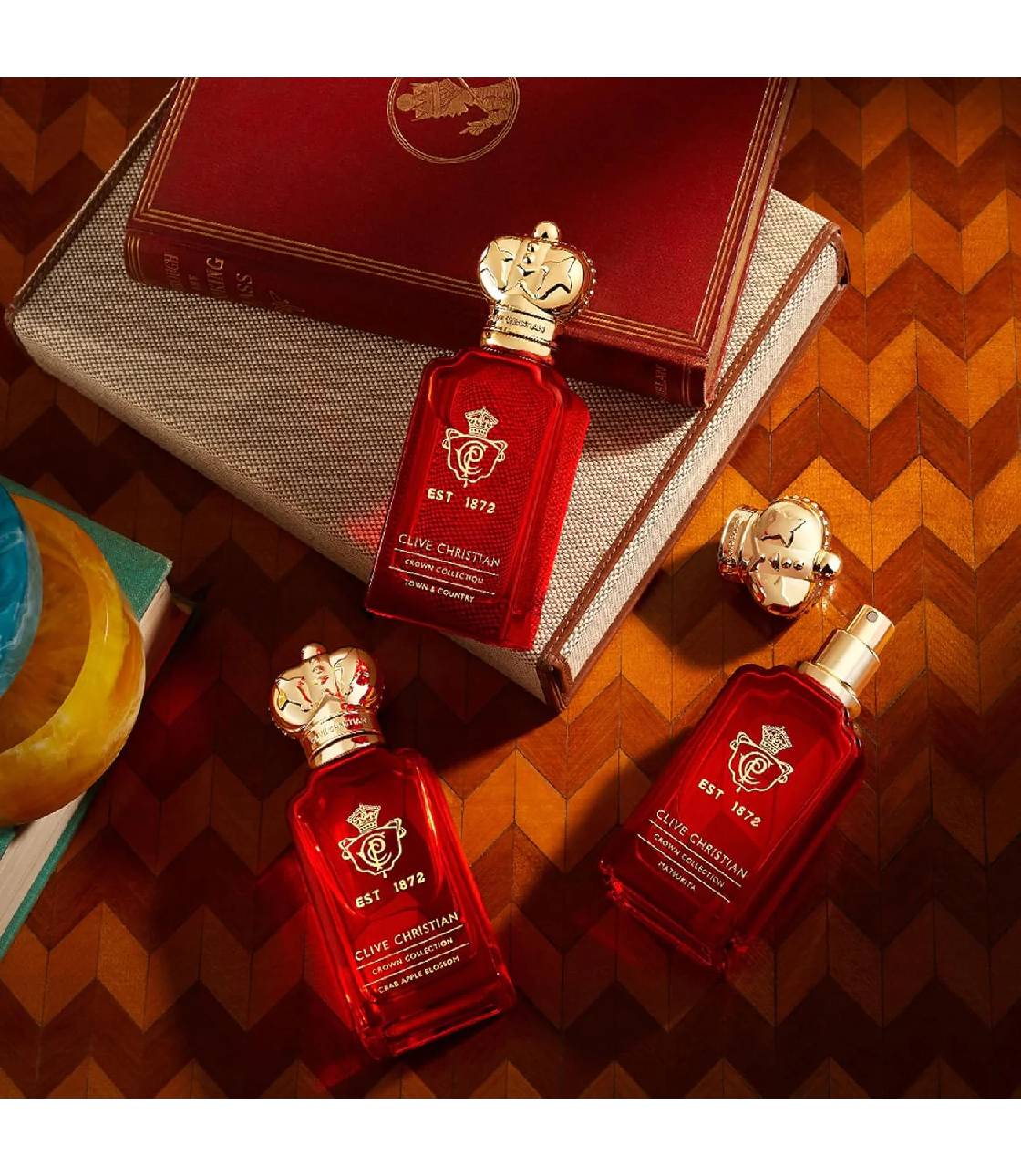 Nước hoa Unisex Clive Christian Town Country EDP được ra mắt vào năm 2023. Một hương thơm thật tuyệt! Họ đã nghiên cứu và phục hồi lại công thức ban đầu của nước hoa này để tạo ra một phiên bản mới, tươi mới và độc đáo hơn. Chai nước hoa Clive Christian Town Country EDP được thiết kế có dáng chai hình trụ dài, thon gọn. Thân chai được làm bằng thủy tinh cao cấp, với gam màu đỏ quý phái. Chiếc nắp hình vương miện được mạ vàng tạo điểm nhấn, đại diện cho sự cao quý và quyền lực. Giữa chai được in logo và tên thương hiệu vô cùng tinh tế. Tổng thể chai toát lên sự sang trọng và đẳng cấp cho thương hiệu Clive Christian.