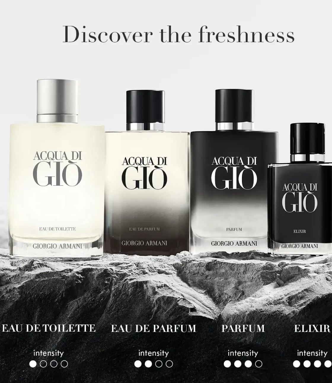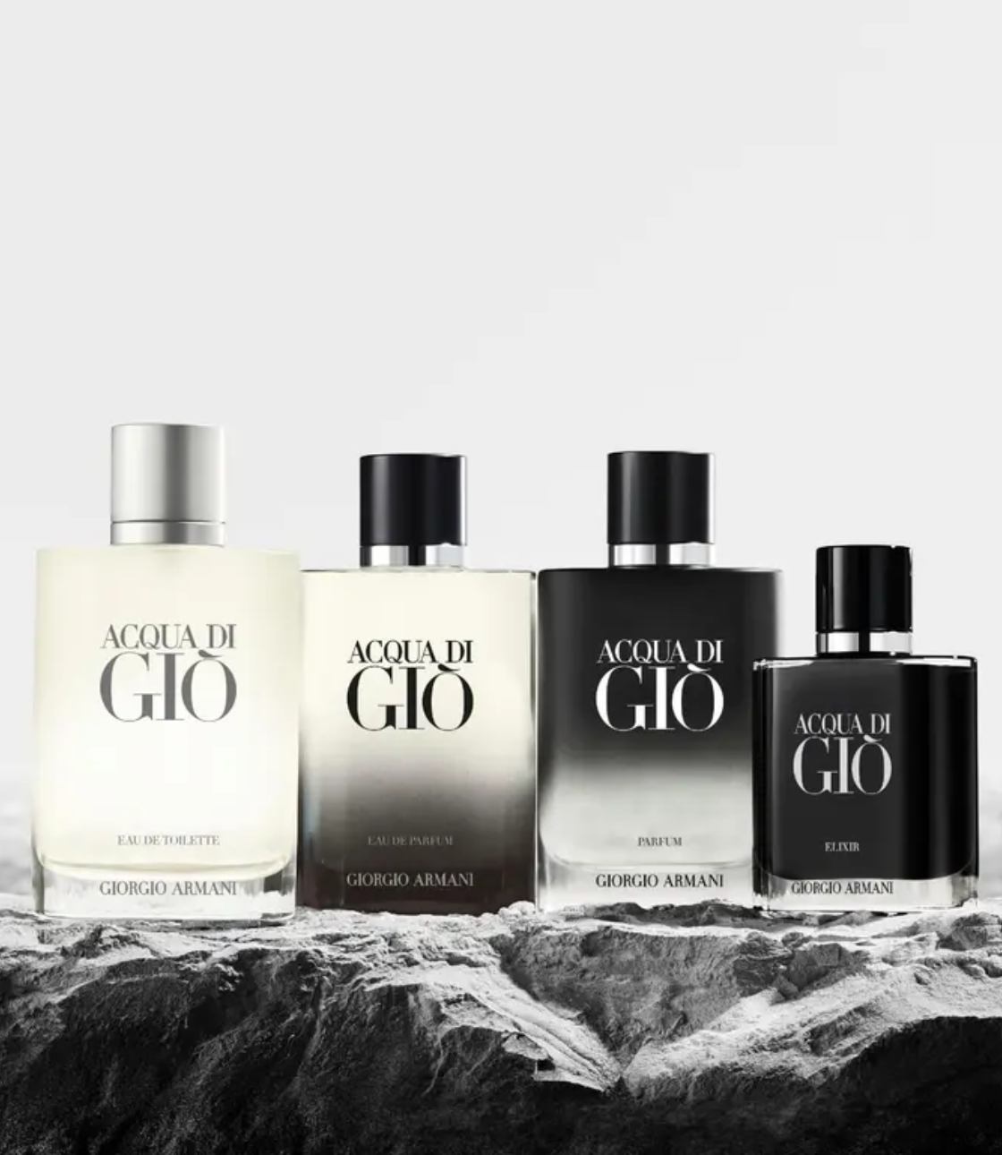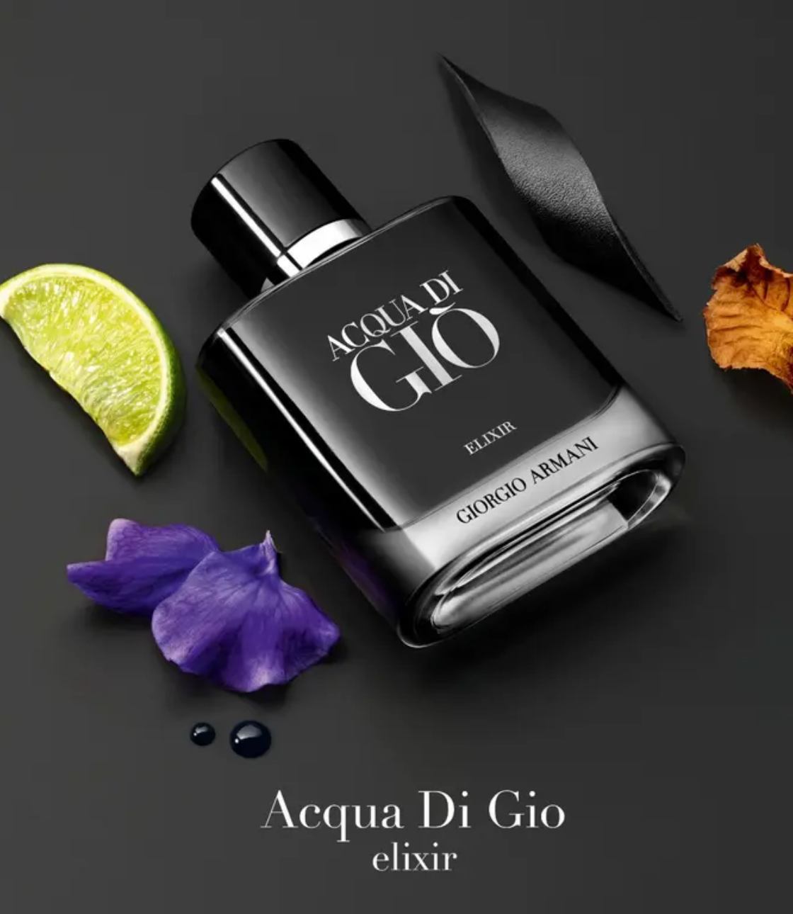 Acqua di Giò Elixir của Giorgio Armani là một hương thơm Woody Aromatic (Hương thơm Gỗ Hương) dành cho nam giới. Đây là một mùi hương mới. Acqua di Giò Elixir được ra mắt vào năm 2025. Bậc thầy nước hoa sáng tạo ra hương thơm này là Alberto Morillas. Giorgio Armani Acqua di Giò Elixir là một mùi hương mới dành cho nam giới ra mắt vào năm 2025 thuộc bộ sưu tập Acqua di Giò. Mùi hương thơm ngát, gỗ này mở đầu với hương bưởi tươi mát và nhục đậu khấu cay nồng, chuyển tiếp sang các nốt hương nước biển và lá hoa violet thơm ngát, và kết thúc với hương hoắc hương ấm áp và da thuộc.