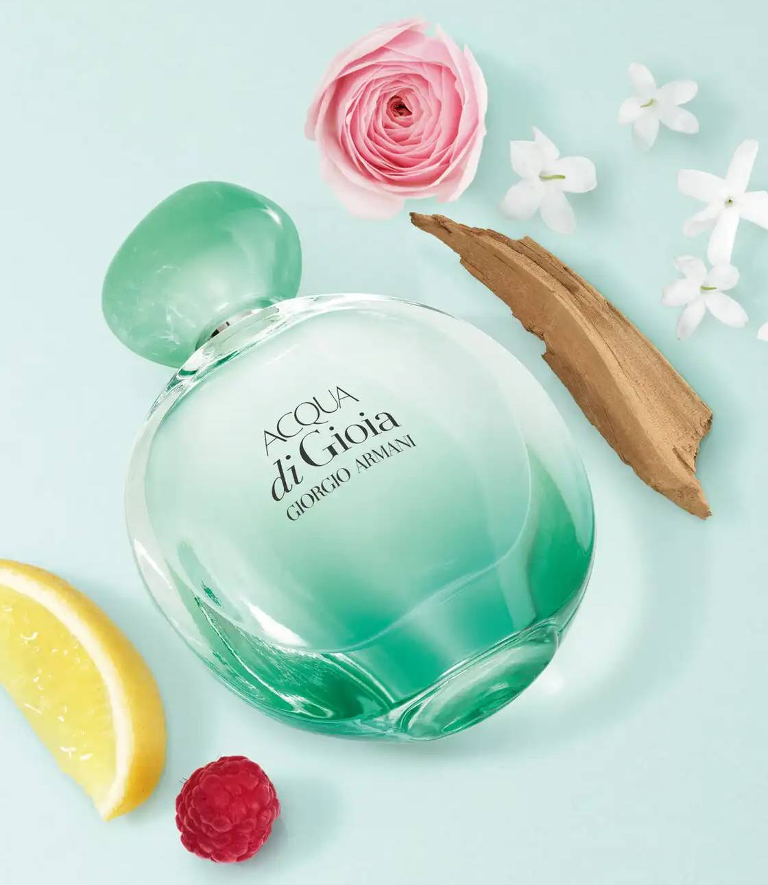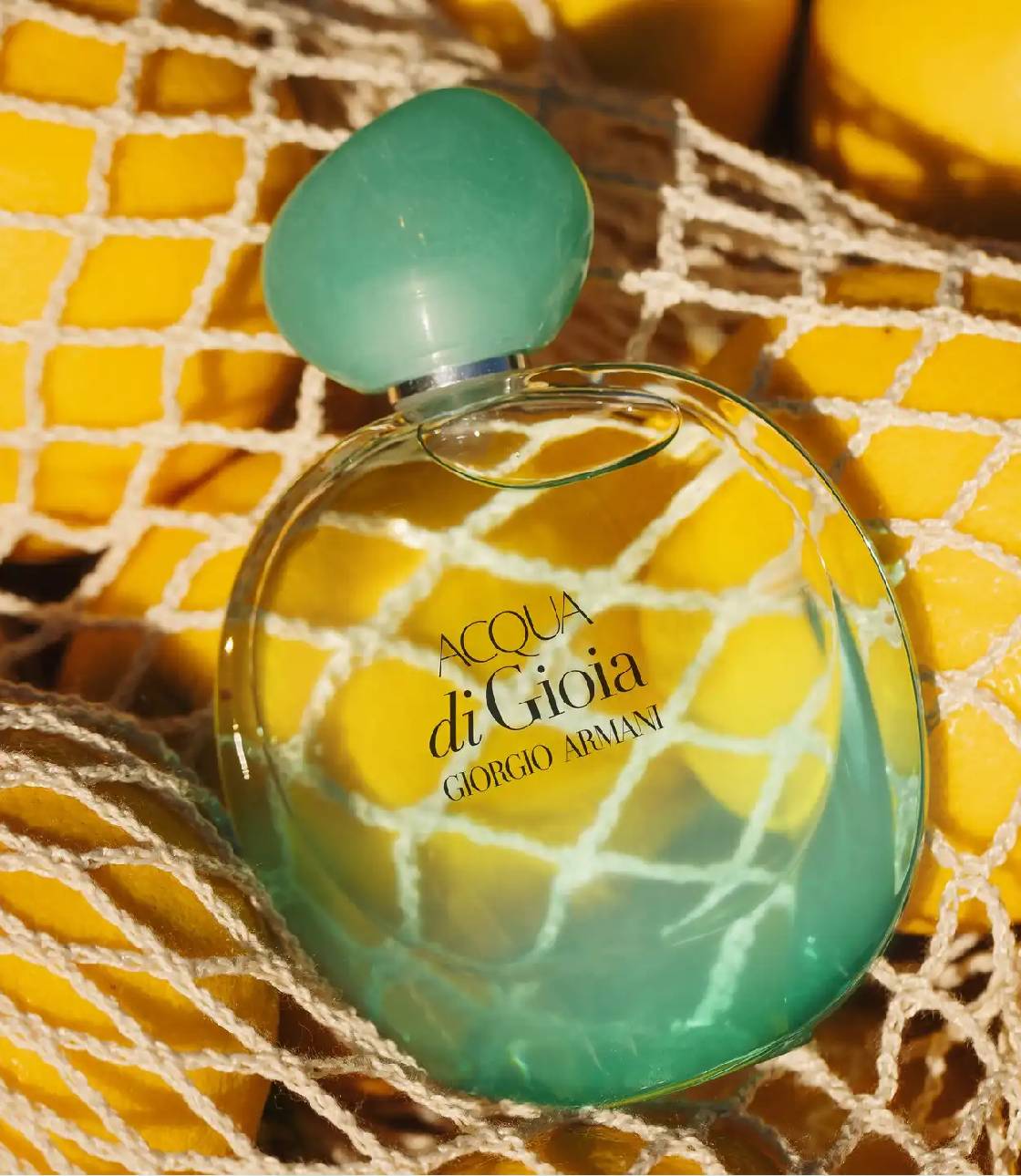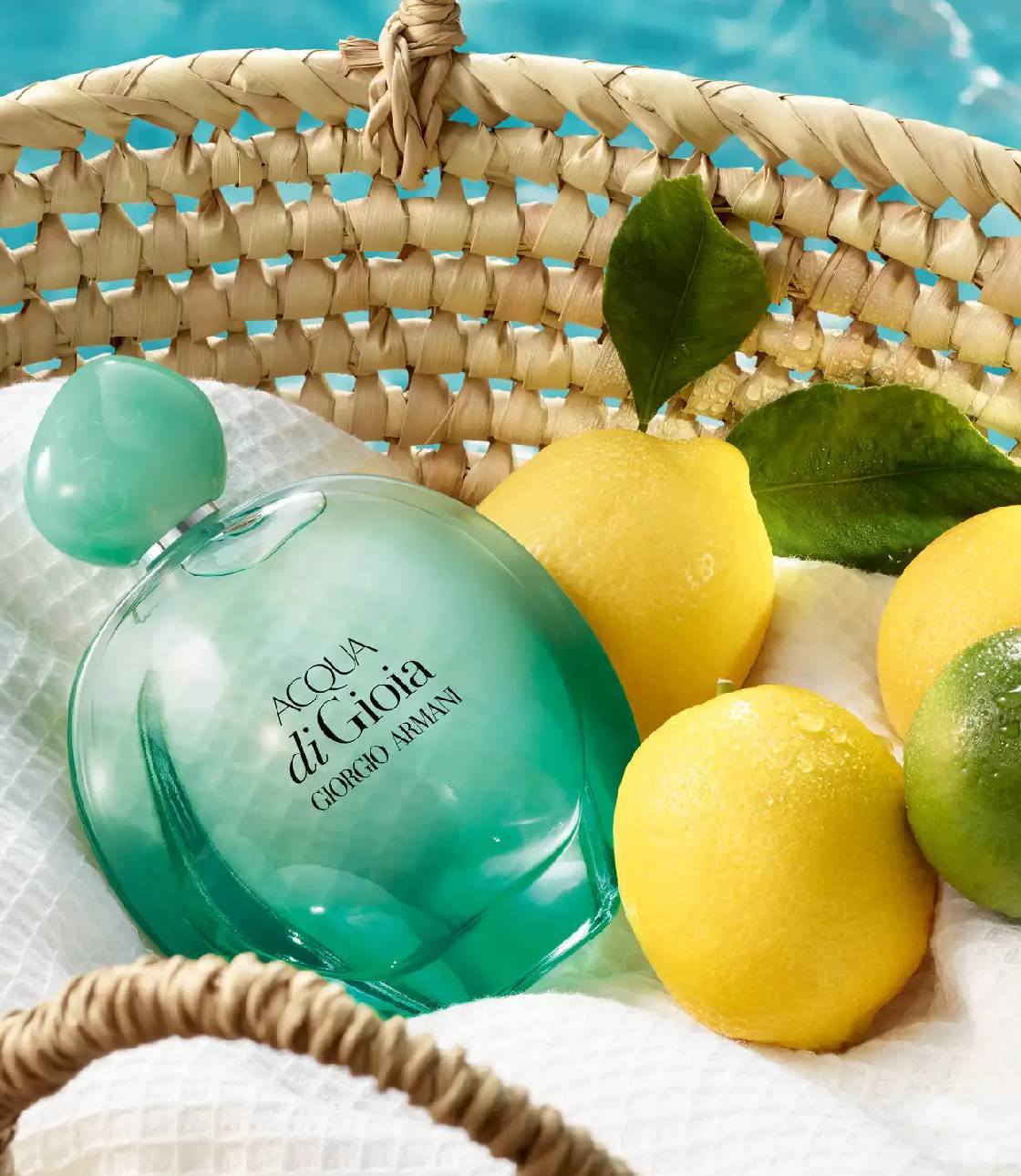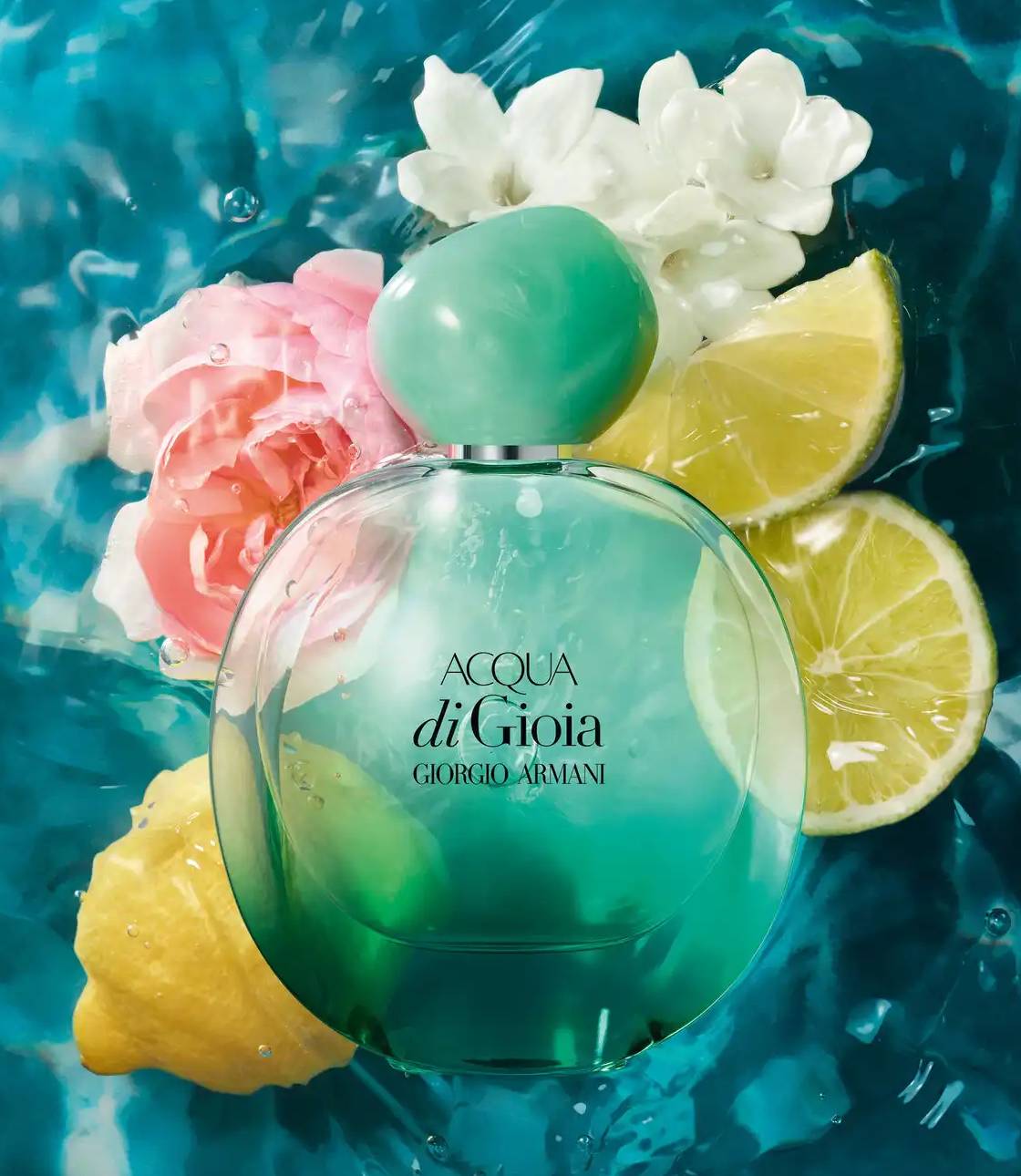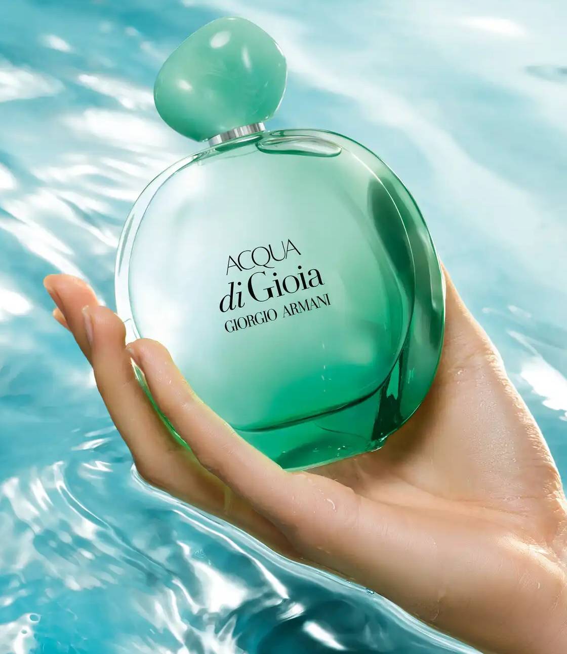 Được trình bày trong thiết kế chai mới đầy mê hoặc, gợi nhớ đến hình dáng tròn mang tính biểu tượng của Acqua di Gioia, chiếc chai chuyển từ màu xanh bạc hà nhạt trong suốt ở đỉnh sang màu xanh ngọc lam sống động ở đáy, phản ánh quang phổ màu sắc được tìm thấy trong vùng biển Địa Trung Hải.