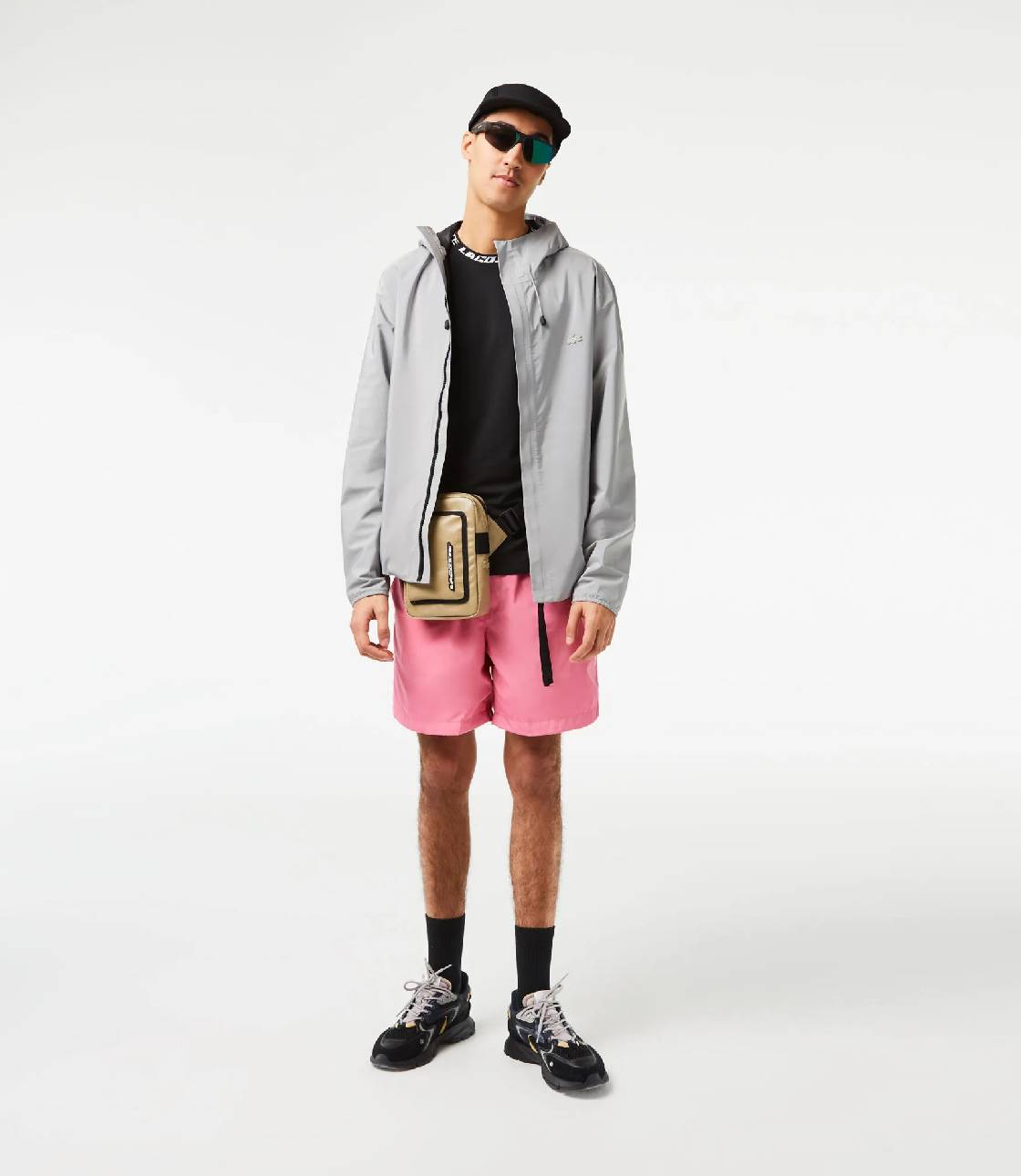 Quần short thể thao vải dù lạnh, lưng thun cao trên eo