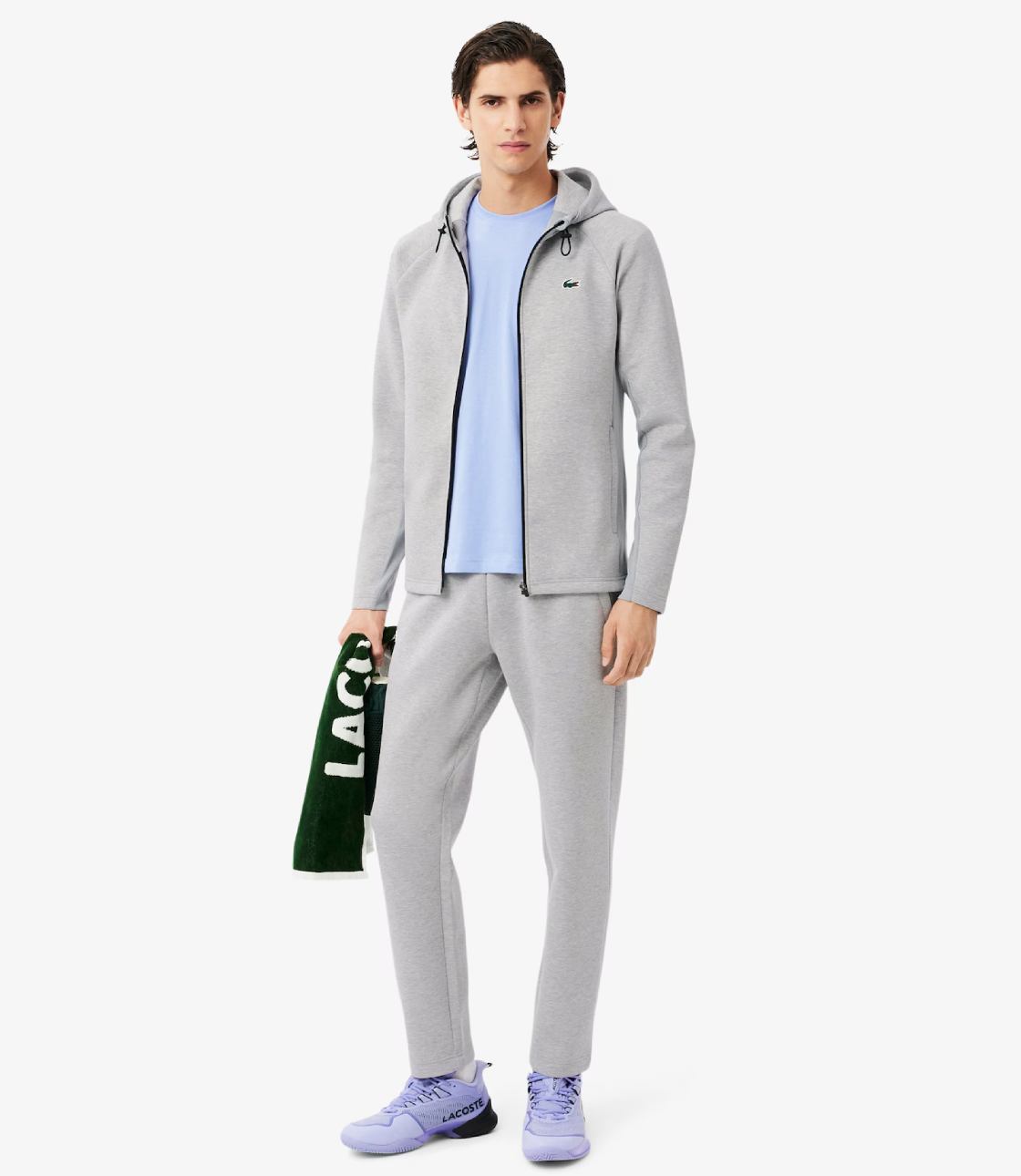 Áo khoác Lacoste Sport, dây kéo với hoạ tiết trơn đơn giản đi kèm với chiếc logo nhựa thể thao, được làm từ chất thun lạnh kết hợp cotton tạo cảm giác êm ái nhẹ nhàng khi mặc.