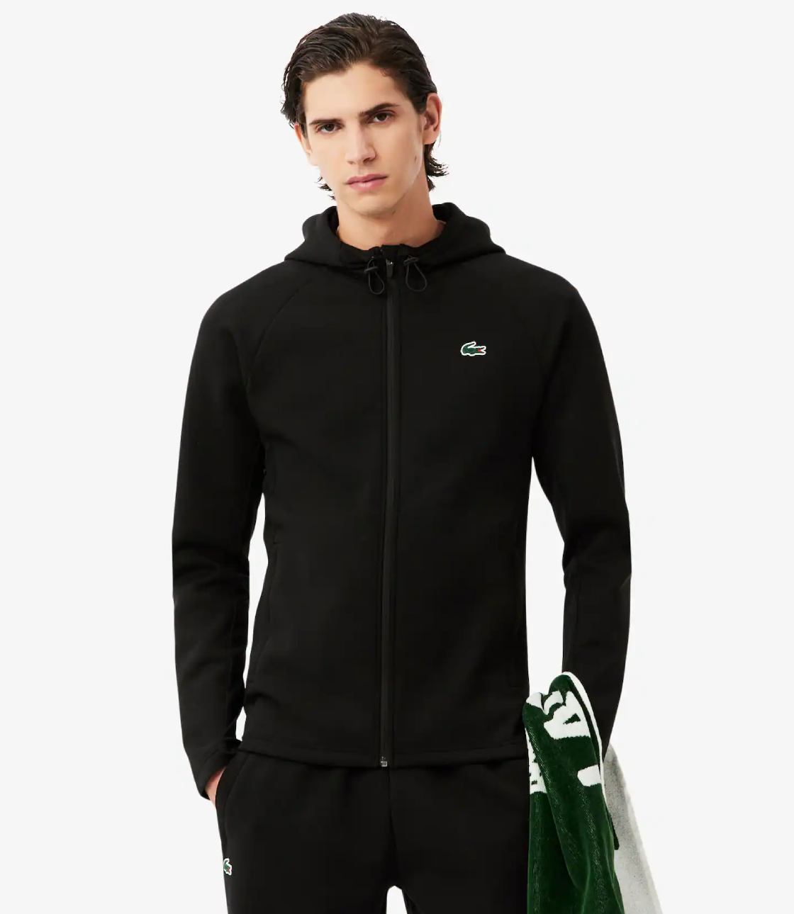 Áo khoác Lacoste Sport, dây kéo với hoạ tiết trơn đơn giản đi kèm với chiếc logo nhựa thể thao, được làm từ chất thun lạnh kết hợp cotton tạo cảm giác êm ái nhẹ nhàng khi mặc.