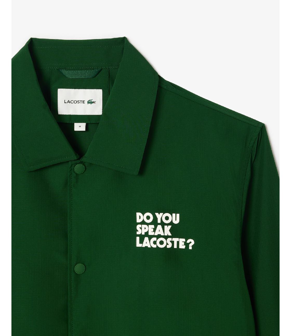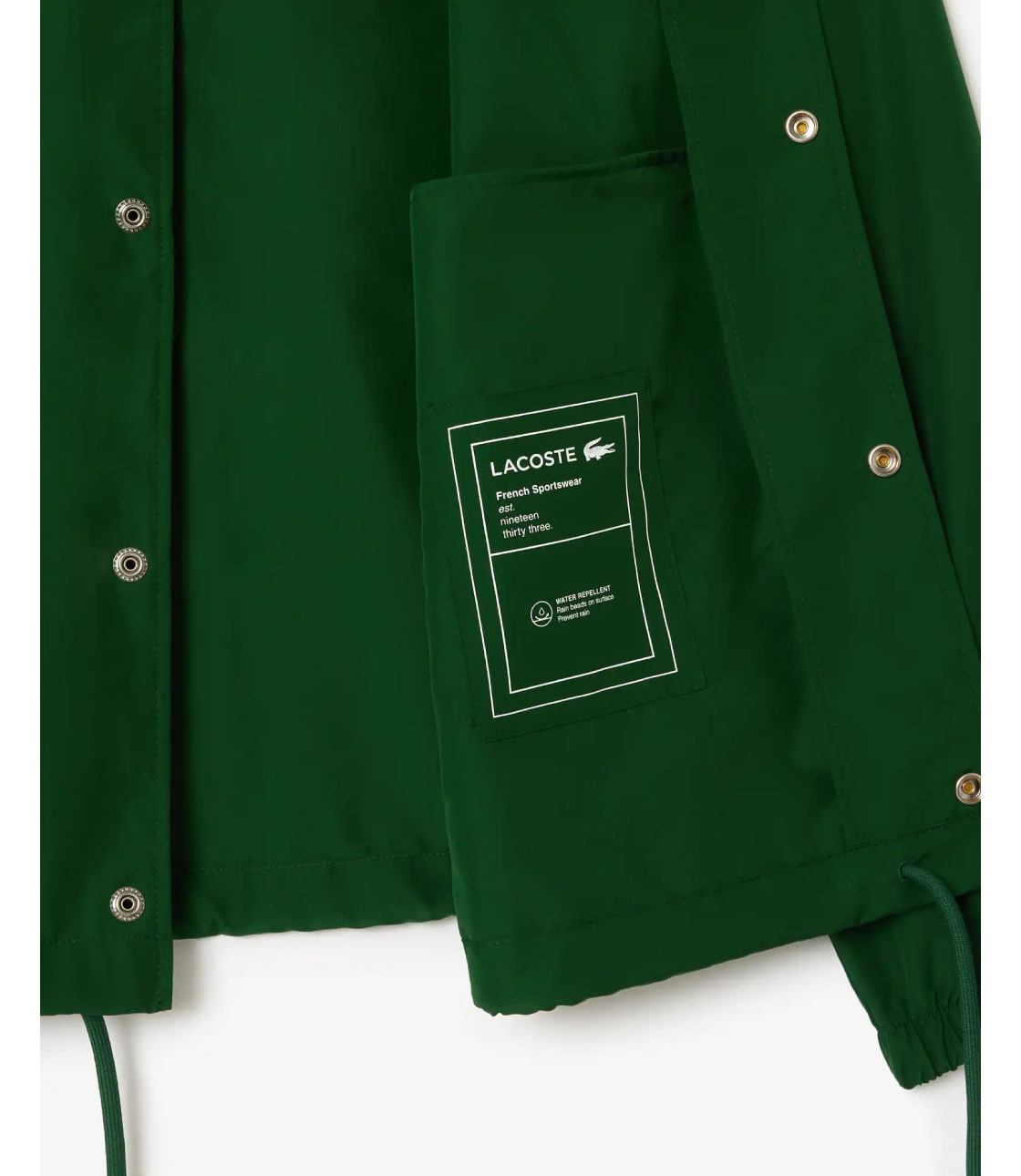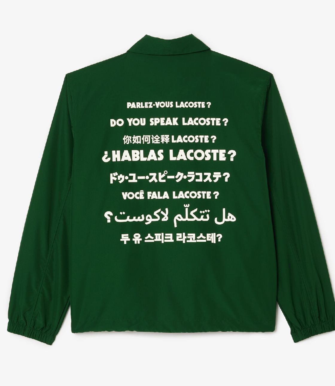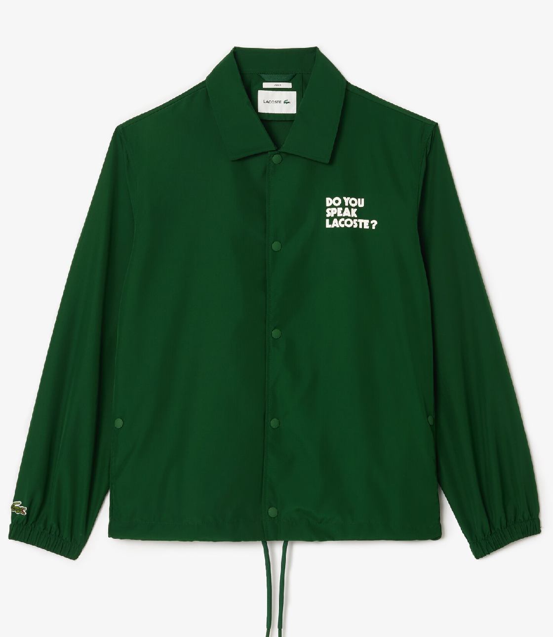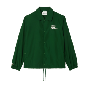 Áo khoác vải dù mát, mềm mại có nút bấm từ Lacoste, thương hiệu chuyên về đồ thể thao từ năm 1933. Thiết kế rộng rãi, thoải mái, vai rủ và họa tiết thêu hình cá sấu đặc trưng tinh tế.