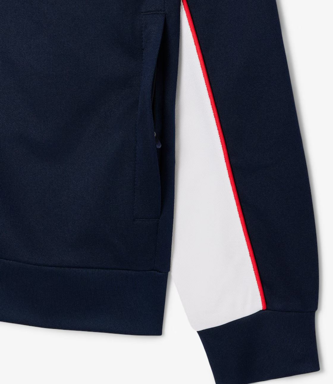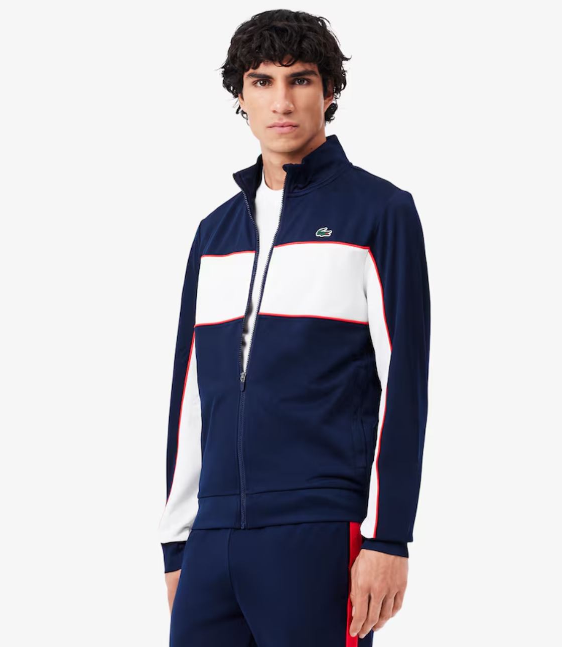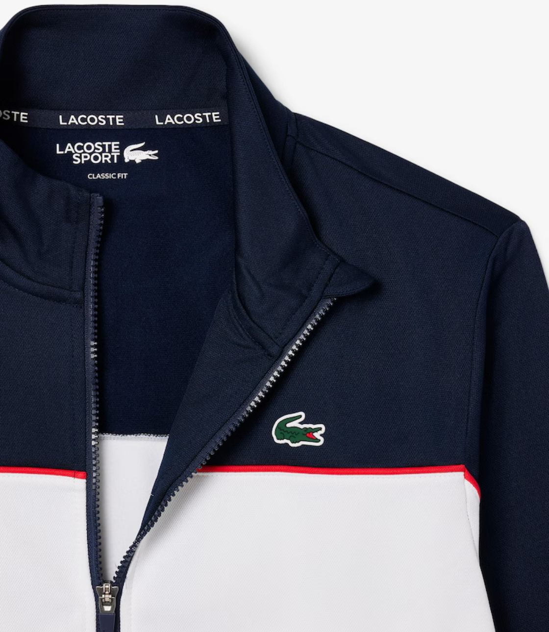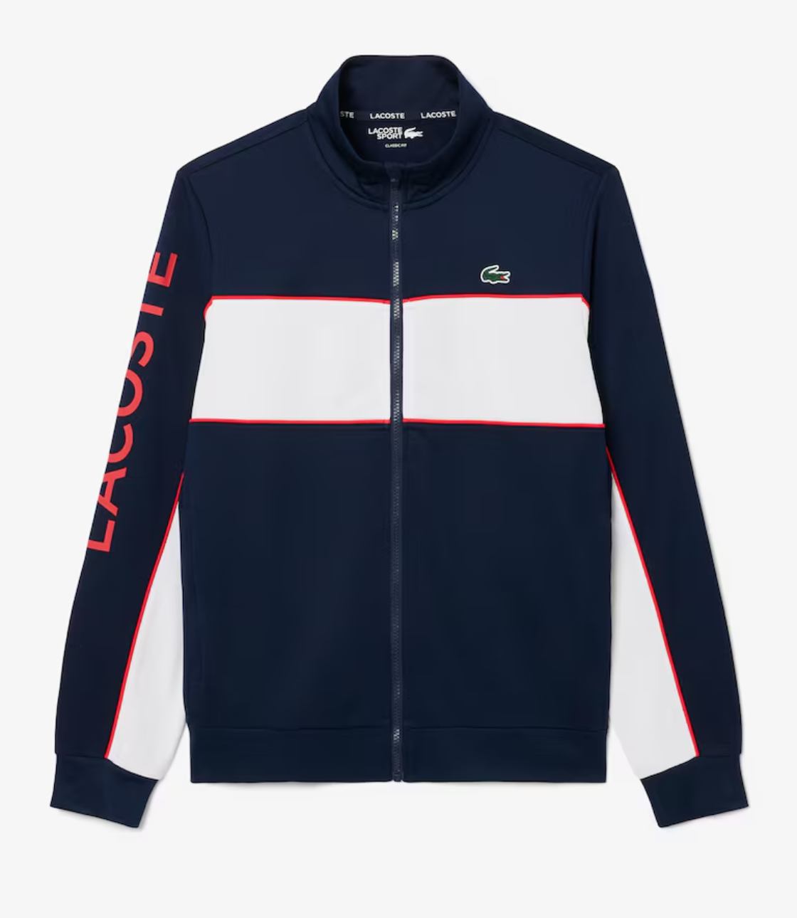 Thời trang kết hợp với trang phục thể thao trong chiếc áo khoác có khóa kéo này, tích hợp đầy đủ các đặc điểm kinh điển của Lacoste. Được làm từ chất liệu bền chắc, chống mài mòn, thoải mái, với thiết kế phối màu đặc trưng, các chi tiết trang trí và logo thương hiệu in lớn. Phong cách thể thao sang trọng.