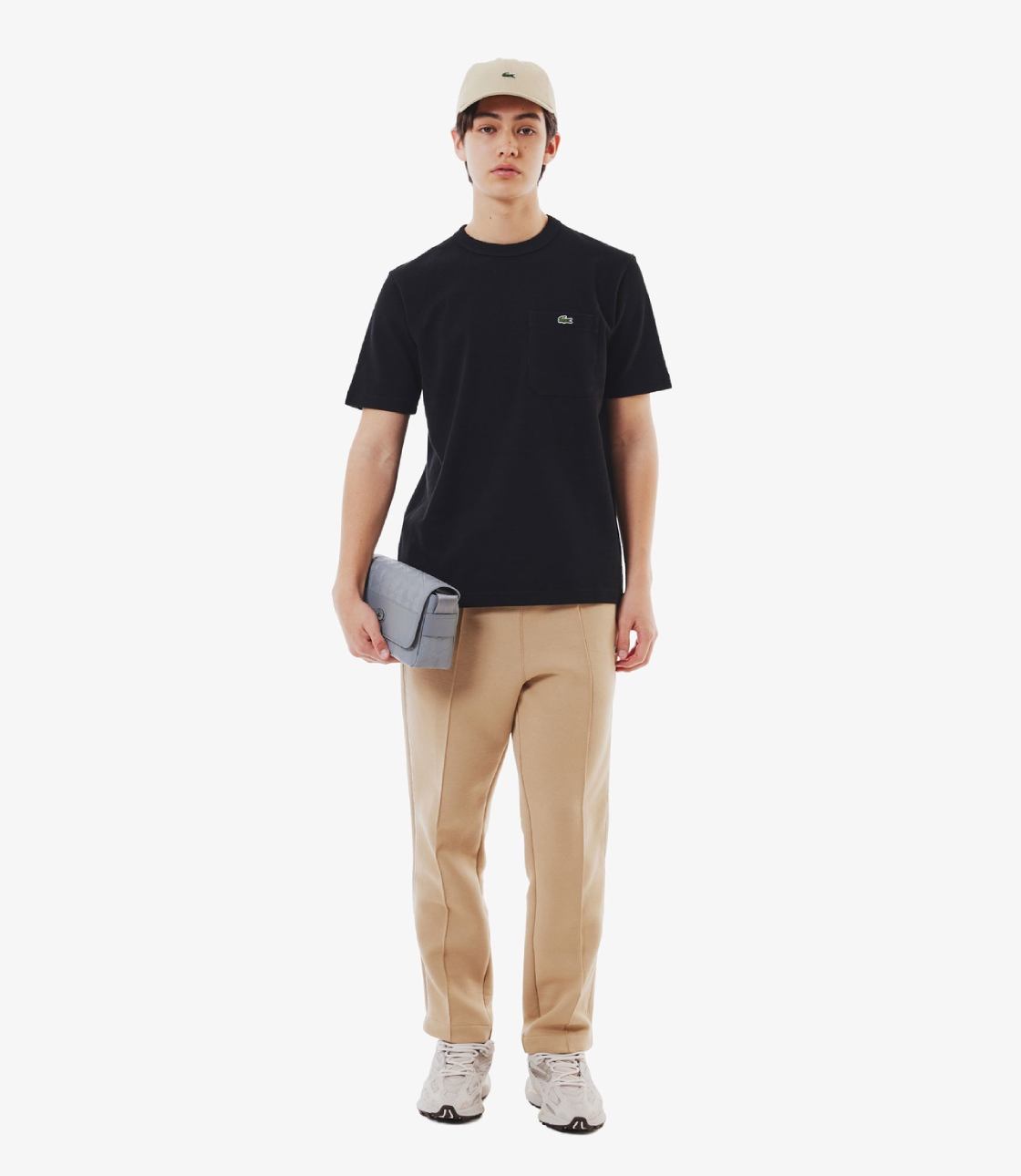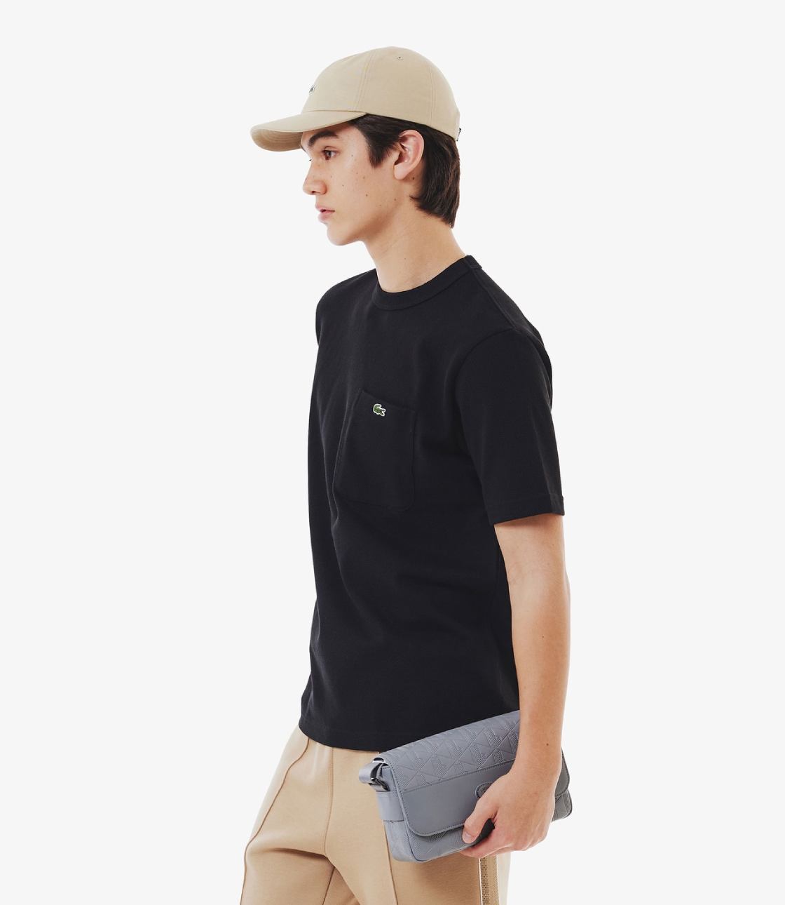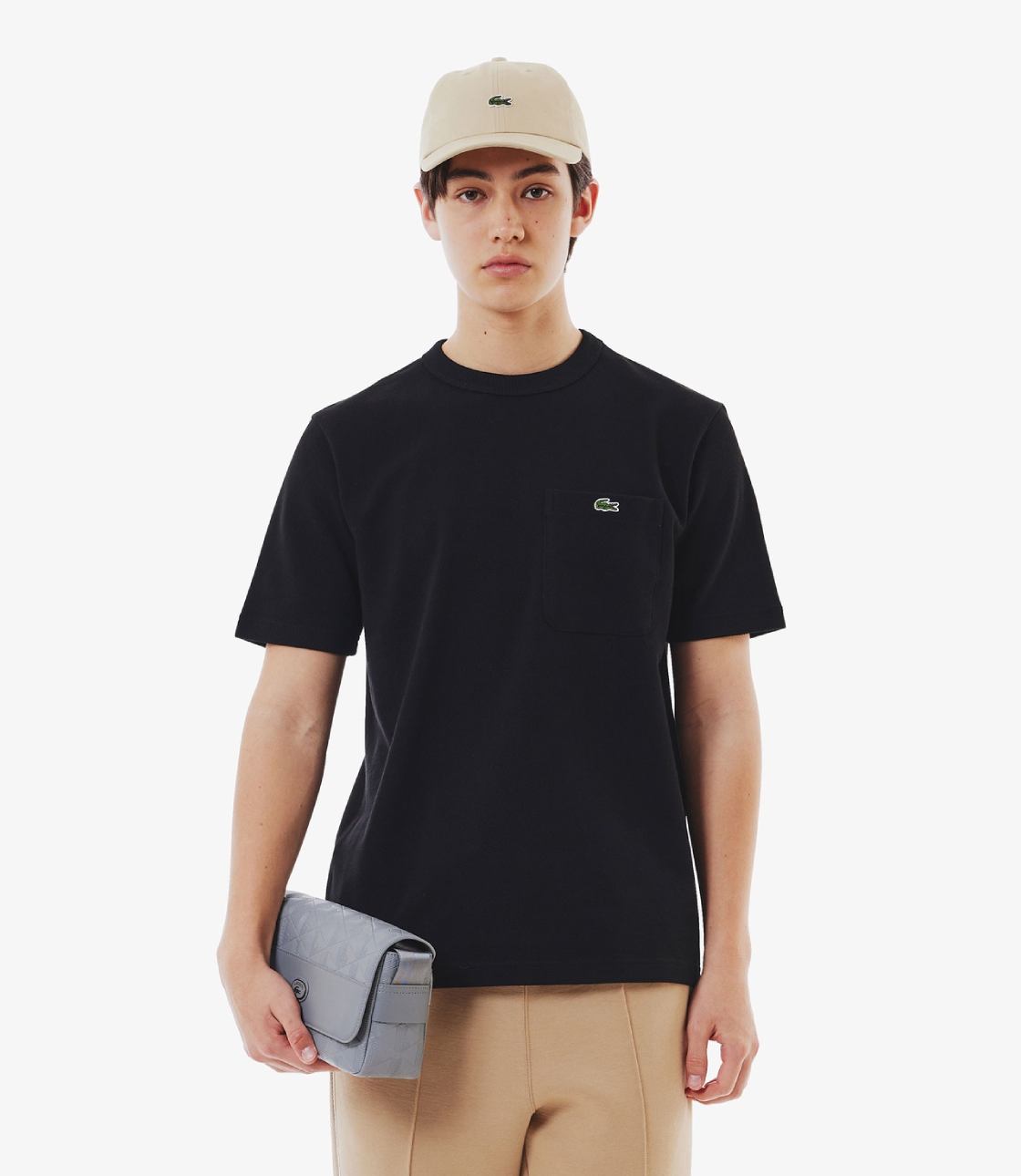 Áo thun phom Classic rộng thoải mái, chất vải cotton gai mát lạnh, thấm hút mồ hôi với hoạ tiết túi và logo “Cá Sấu” thêu trước ngực áo