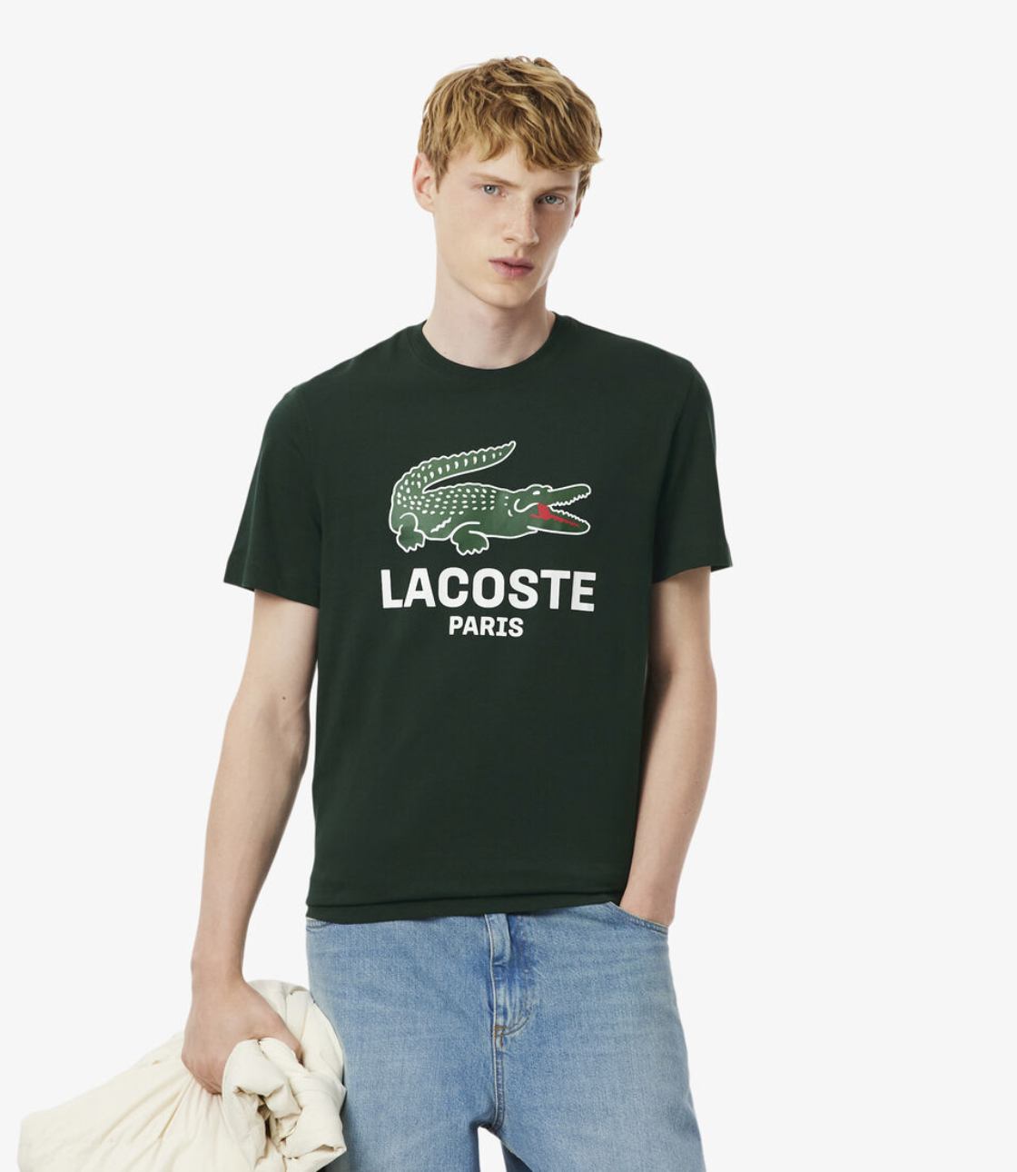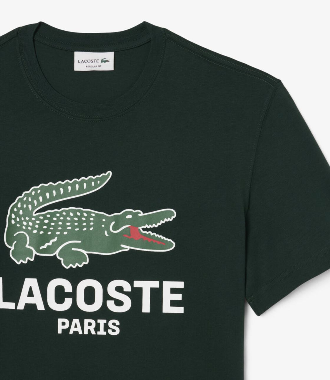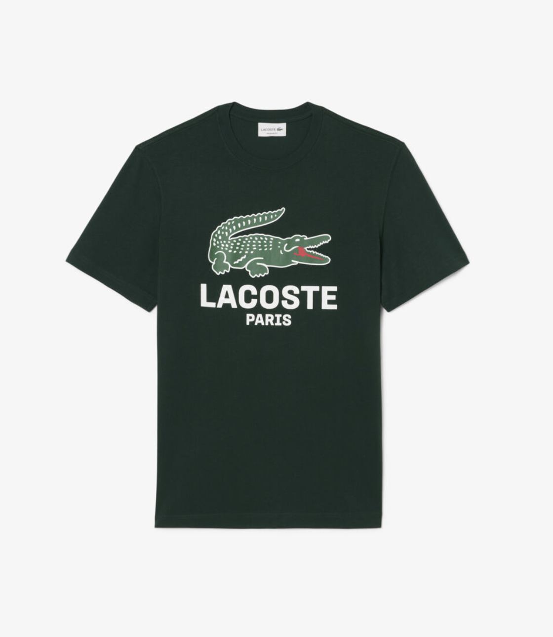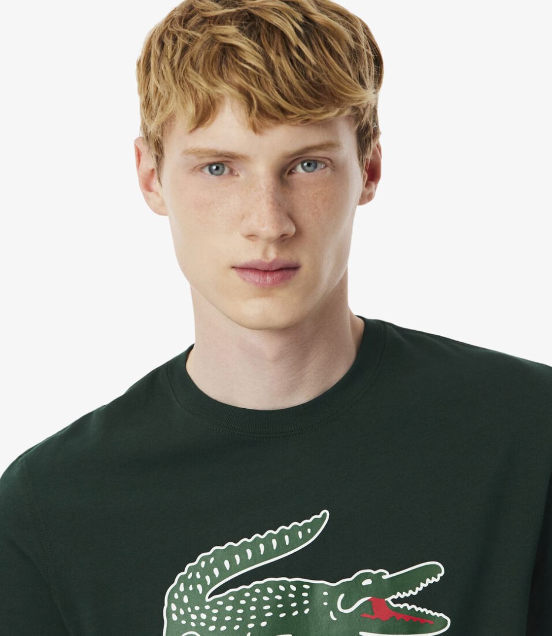 Áo thun Lacoste này được làm từ chất liệu cotton jersey trọng lượng trung bình với họa tiết in nổi bật, tập trung quanh logo lớn. Sự kết hợp giữa phong cách thời trang và thể thao, cùng với logo thêu đặc trưng ở cổ áo tạo thêm điểm nhấn thanh lịch. Phom Regular suôn dễ mặc.
