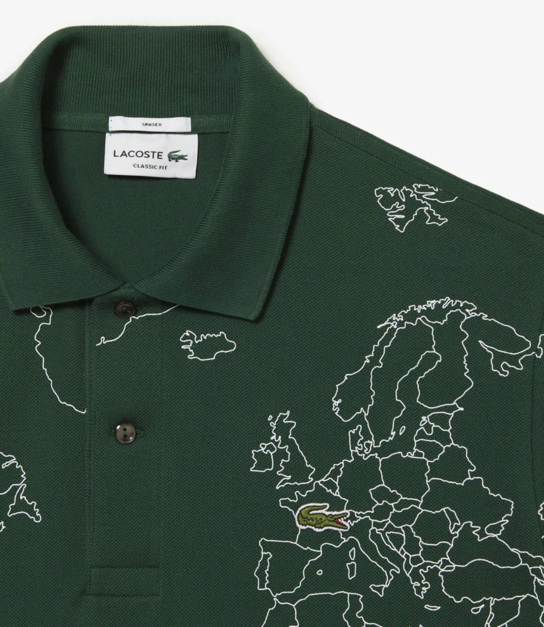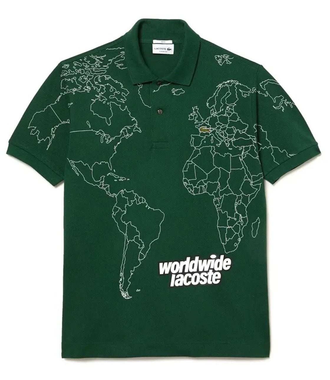 Áo Polo Lacoste Nam Bản Đồ Dáng Classic Cổ Điển PH8046-00-132 Màu Xanh Lục là sản phẩm thời trang thể thao độc đáo và mang tính biểu tượng của thương hiệu Lacoste. Được làm bằng chất liệu 100% cotton gai, sản phẩm này không chỉ đảm bảo độ bền và thoải mái khi mặc mà còn đem lại sự mềm mại và mượt mà tuyệt vời. Thiết kế đặc biệt của sản phẩm là hình bản đồ thế giới in trên áo, với nền màu xanh lục đặc trưng bắt mắt, tạo nên sự khác biệt và độc đáo cho sản phẩm. Điểm nhấn cuối cùng là chữ “Worldwide Lacoste” in đậm trên ngực áo, mang lại sự tự tin và phong cách cho người mặc. Với dáng áo polo classic cổ điển, sản phẩm có thể kết hợp với nhiều phong cách khác nhau, từ trang phục thể thao đến phong cách lịch sự.