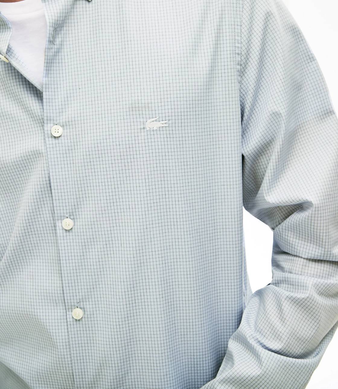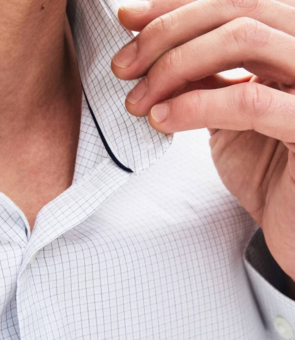 Sơ mi màu xanh kết hợp với hoạ tiết caro nhìn đơn giản nhưng vô cùng lịch sự, chất vải cotton có độ bóng nhẹ. Phom Slim Fit áo ôm phần eo tôn dáng người mặc.