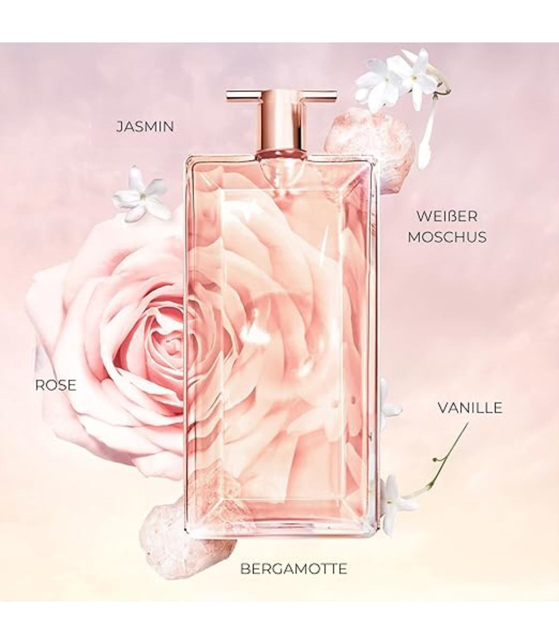 Thuộc nhóm hương Floral Fruity, Idôle Le Grand Parfum mở đầu với sự tươi sáng, thanh thoát của các nốt trái cây nhẹ nhàng, hòa quyện cùng tầng hương hoa hồng đặc trưng của dòng Idôle – biểu tượng của sự nữ tính và thanh lịch. Lớp hương cuối mềm mại nhưng đầy chiều sâu giúp tổng thể mùi hương trở nên sang trọng, cuốn hút và lưu lại dấu ấn tinh tế suốt nhiều giờ.