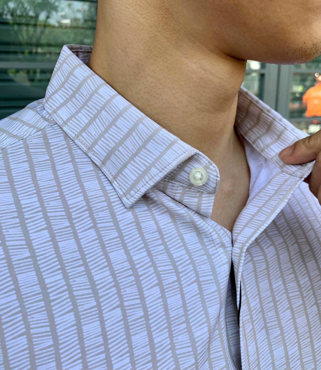 Chất vải lụa mềm, mịn tạo phong cách thoáng đãng, nhẹ nhàng nhưng rất nam tính. Form Slim Fit ôm tôn dáng