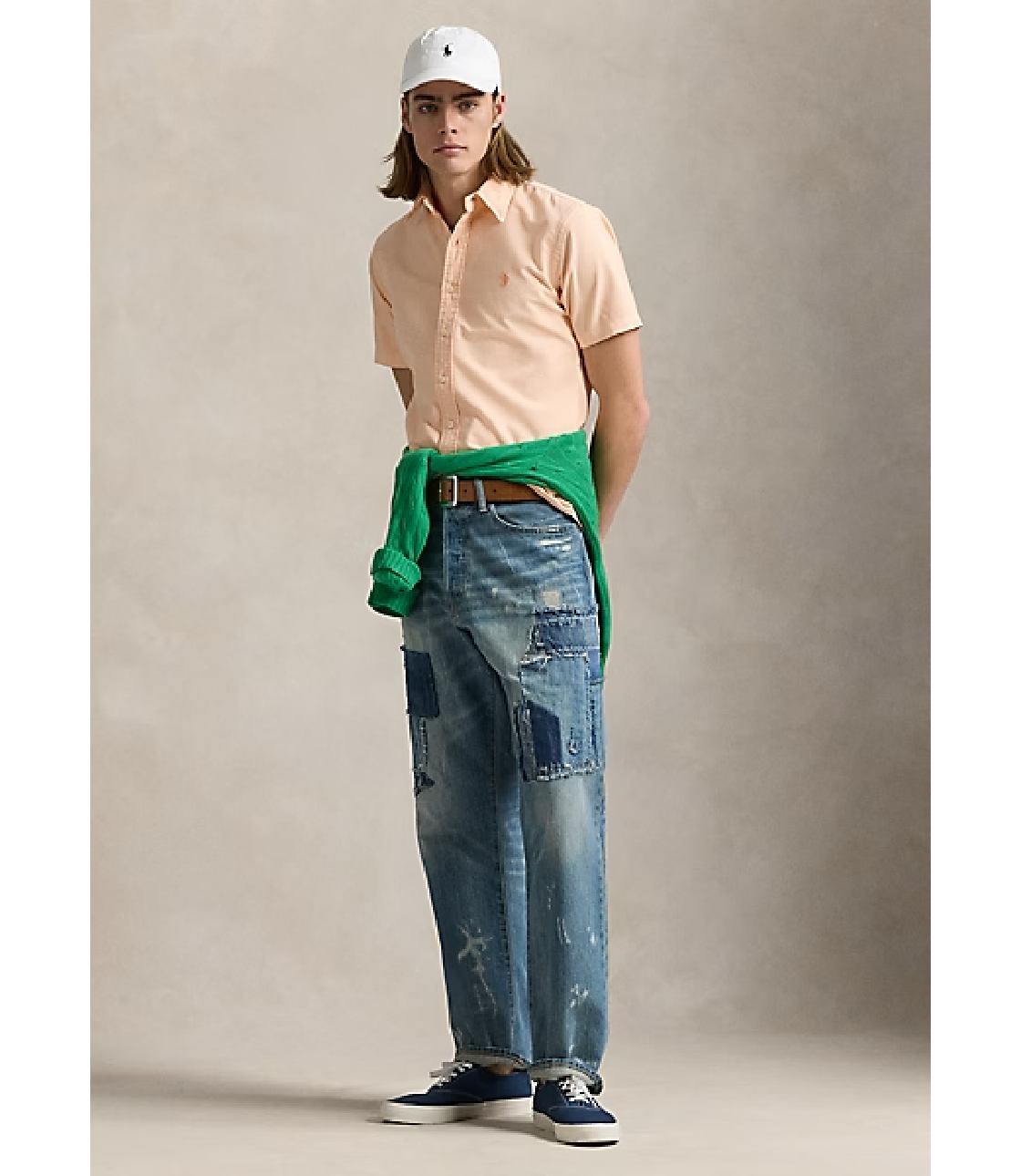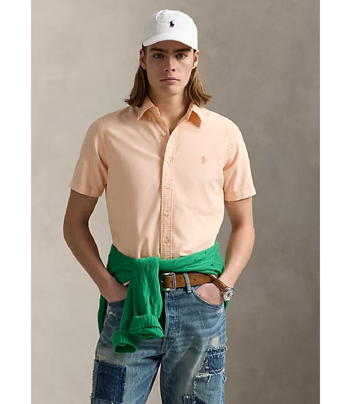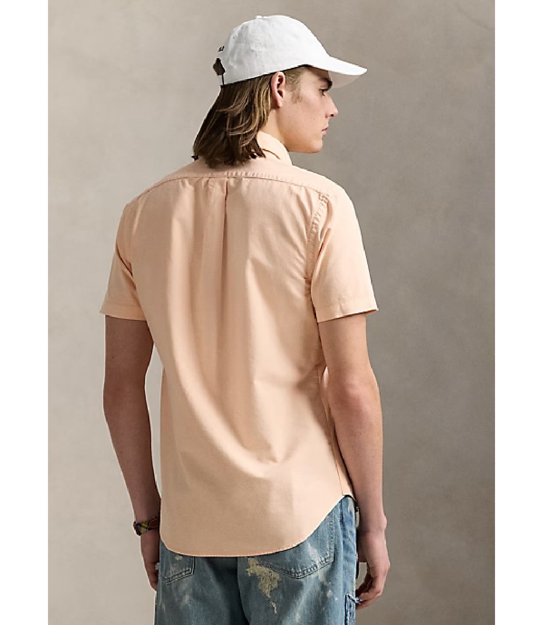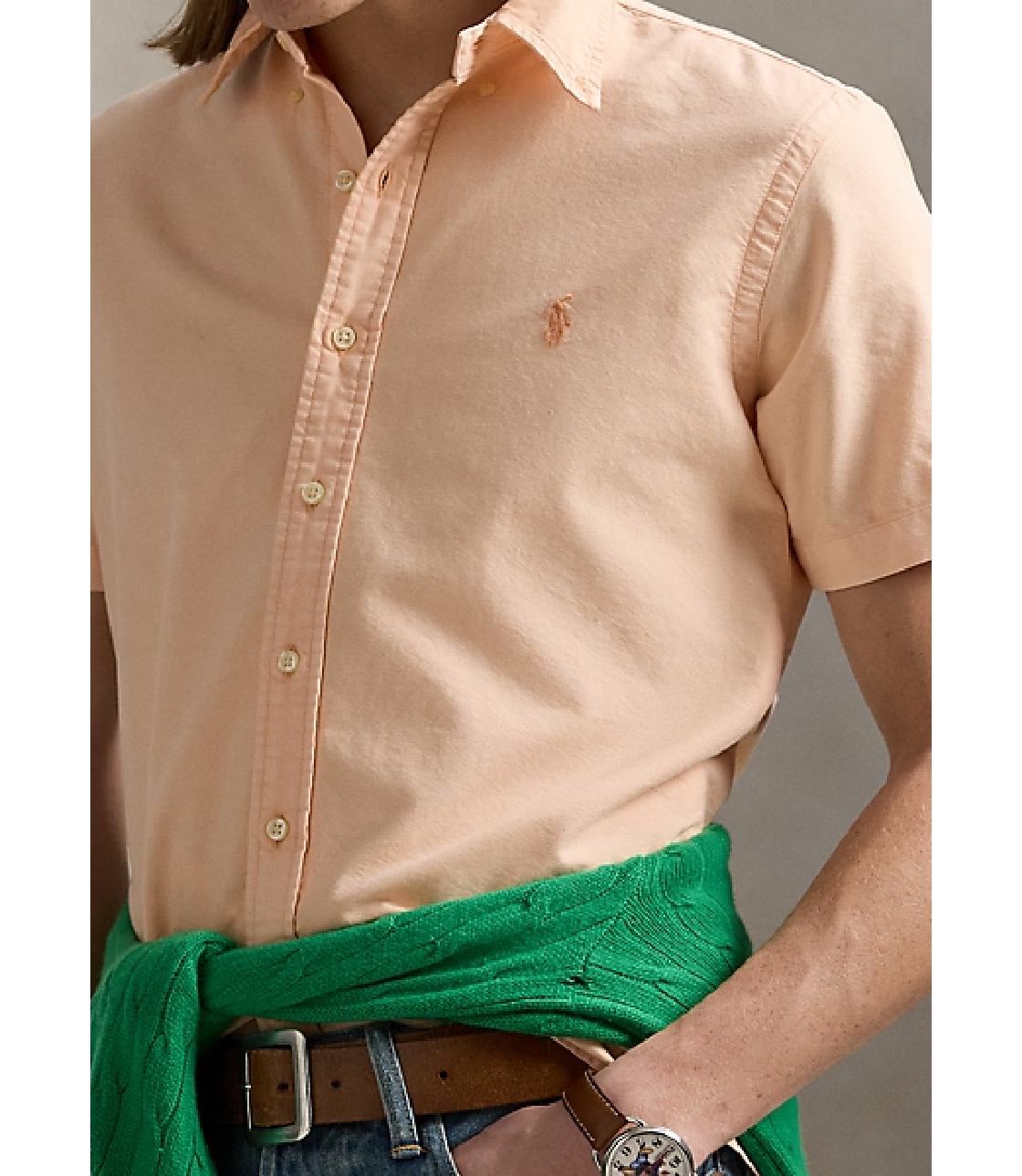 Sơ mi màu Hồng Cam với hoạ tiết logo “Ralph Lauren” thêu sắc nét bên trái ngực áo. Phom Classic rộng rãi thoái mái, dễ mặc