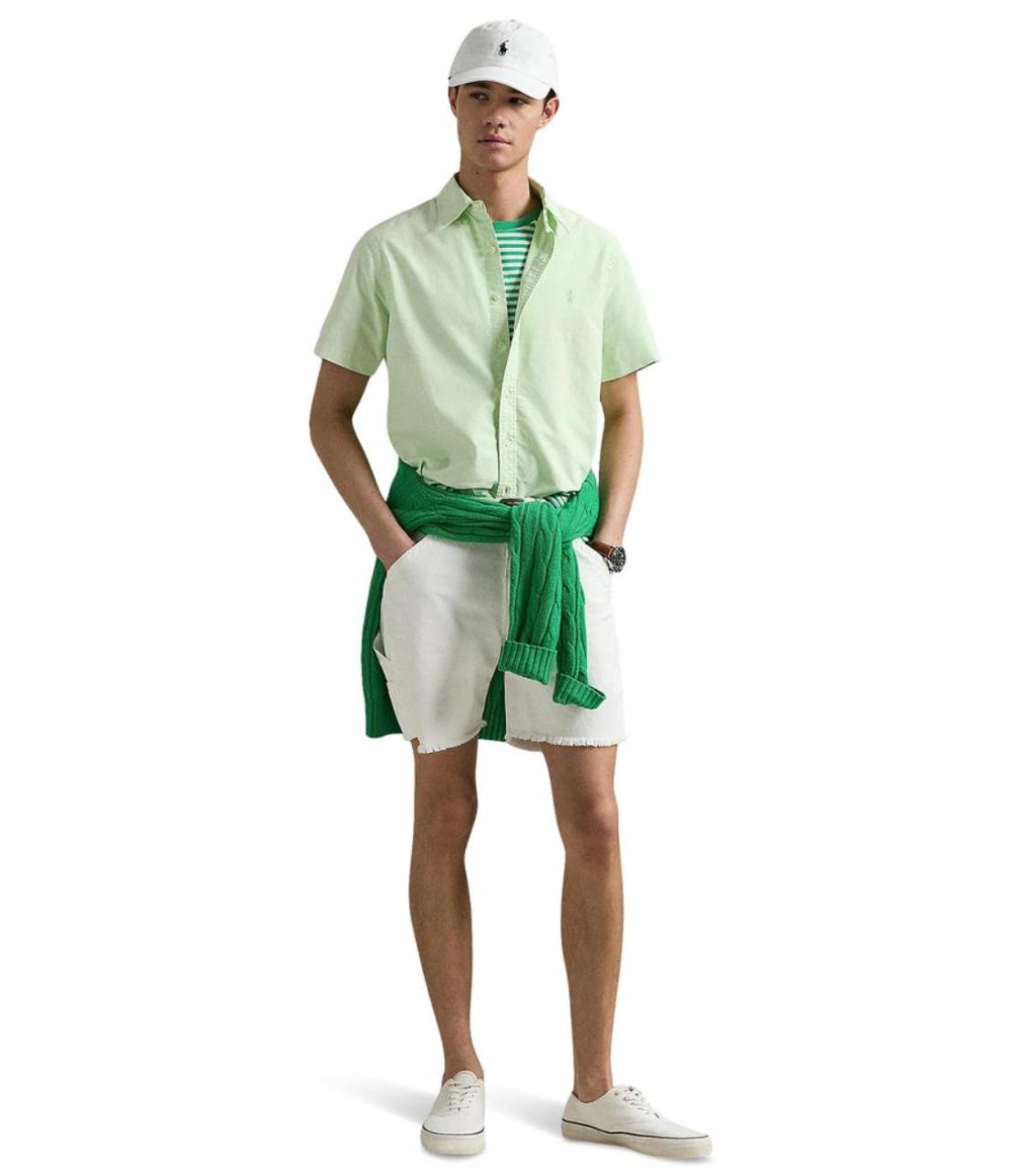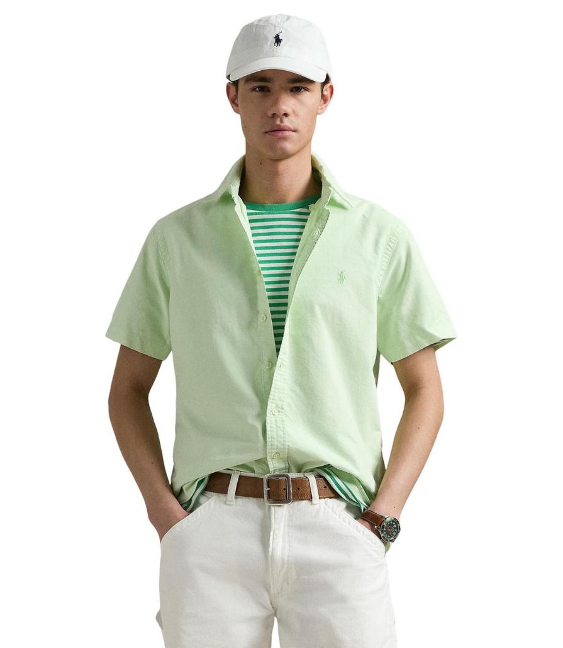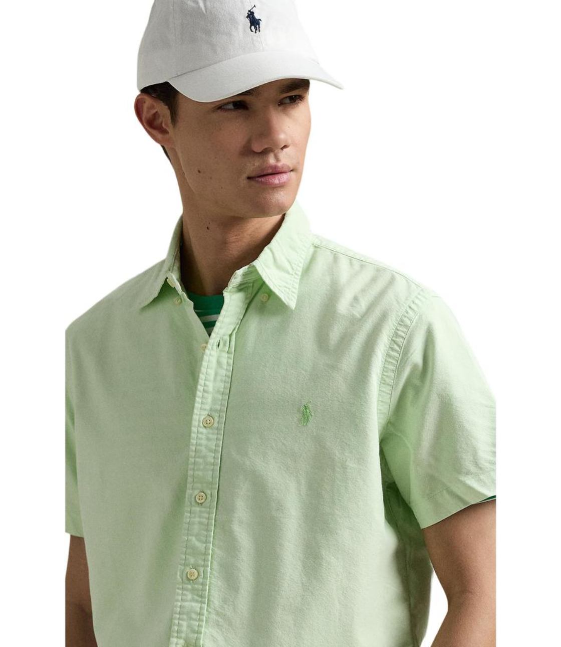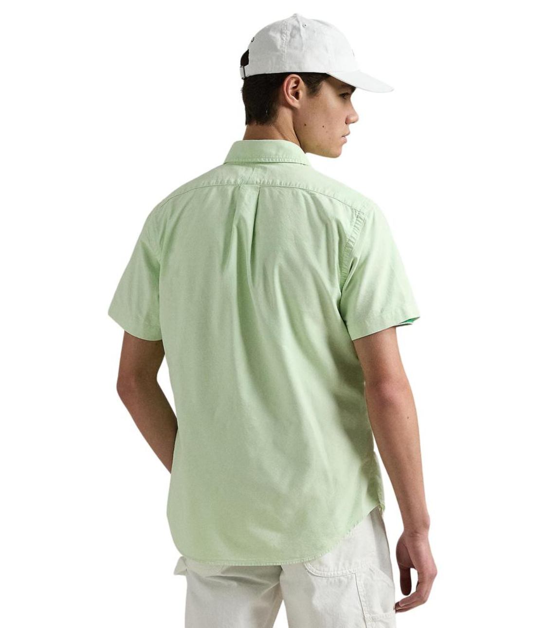 Sơ mi màu xanh mint, tay ngắn với hoạ tiết logo “Ralph Lauren” thêu sắc nét bên trái ngực áo. Phom Classic rộng rãi thoái mái, dễ mặc
