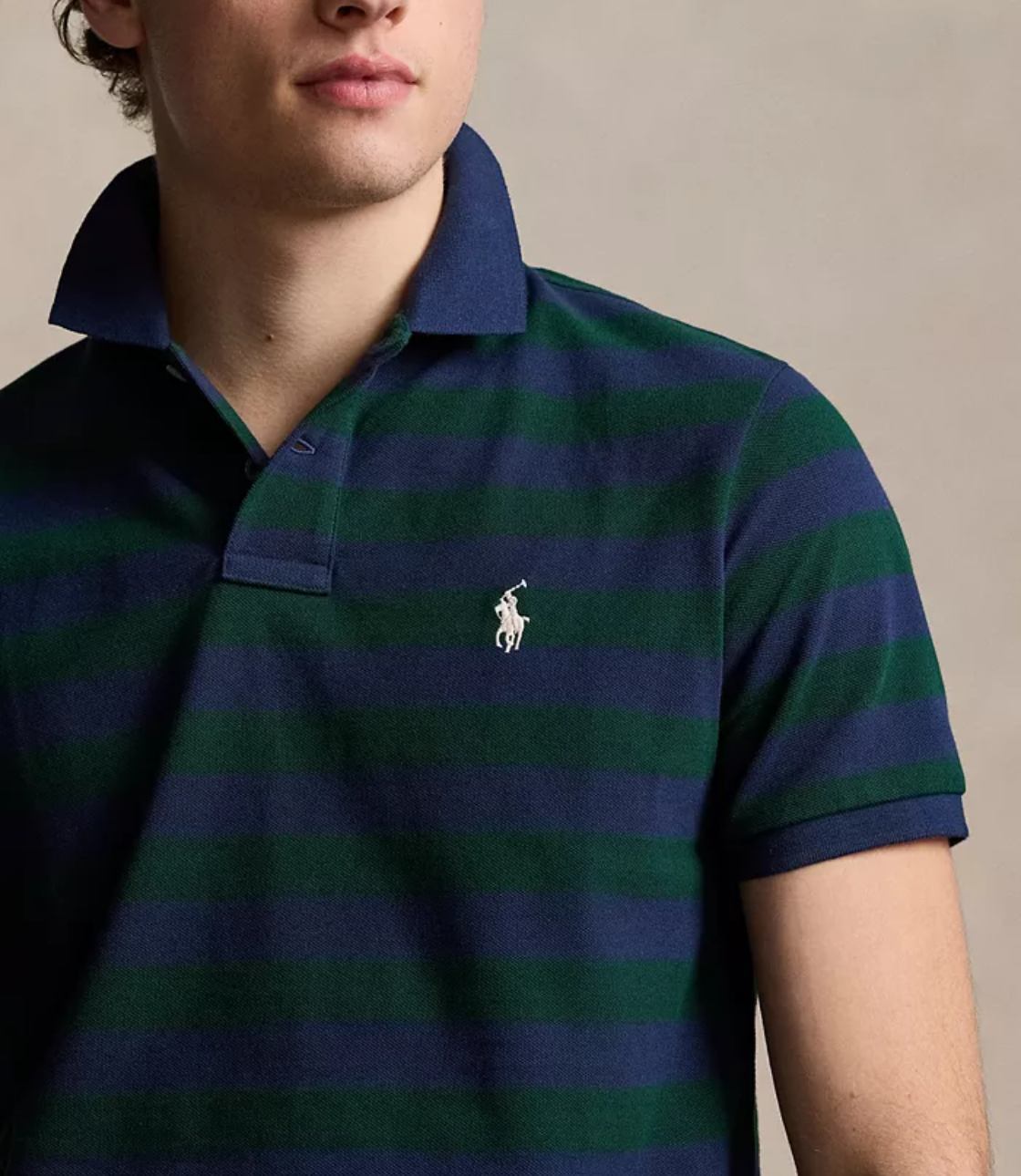 Là biểu tượng phong cách Mỹ từ năm 1972, áo Polo đã được nhiều hãng bắt chước nhưng chưa bao giờ có hãng nào sánh kịp. Qua nhiều thập kỷ, Ralph Lauren đã tái hiện phong cách đặc trưng của mình với nhiều màu sắc và kiểu dáng khác nhau, nhưng tất cả đều giữ được chất lượng và sự tỉ mỉ đến từng chi tiết của phiên bản gốc mang tính biểu tượng. Phiên bản kẻ sọc này được làm từ chất liệu lưới cotton thoáng khí cao cấp của Polo Ralph Lauren, mang đến vẻ ngoài có kết cấu và cảm giác mềm mại. Phom áo Slim fit gọn gàng tôn dáng.