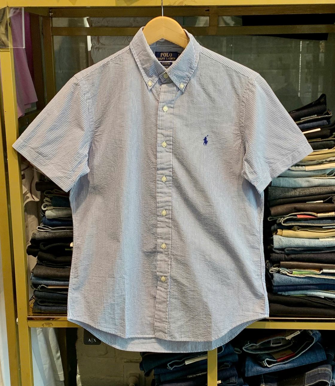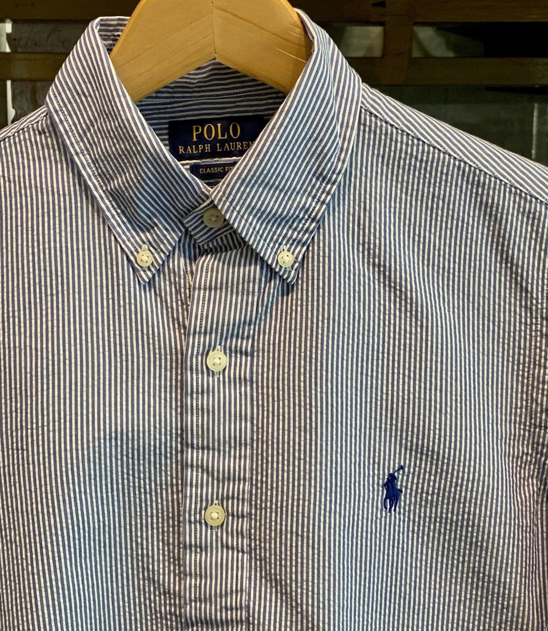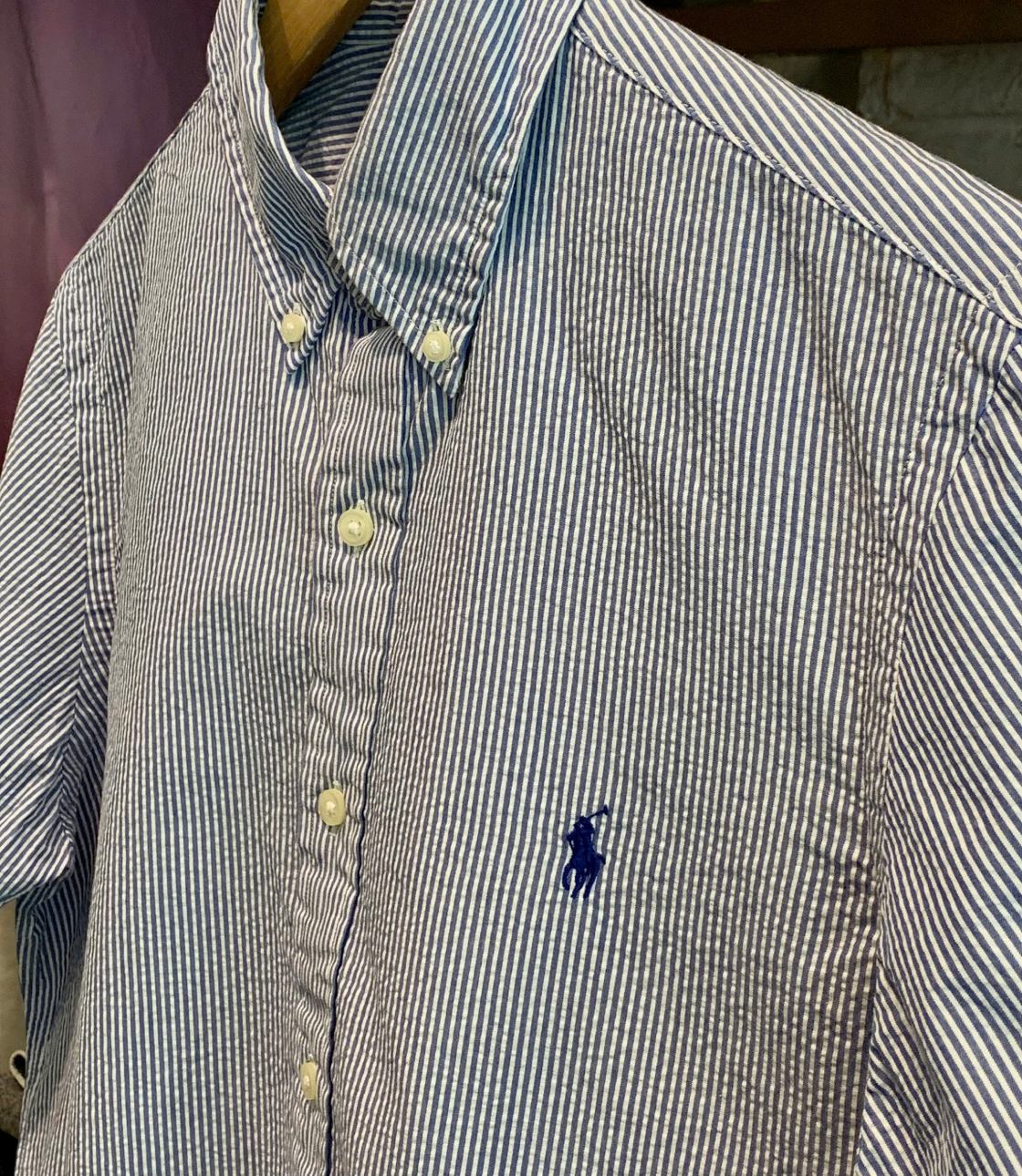 Sơ mi sọc thẳng màu xanh basic với hoạ tiết logo “Ralph Lauren” thêu sắc nét bên trái ngực áo. Phom Classic rộng rãi thoải mái, dễ mặc