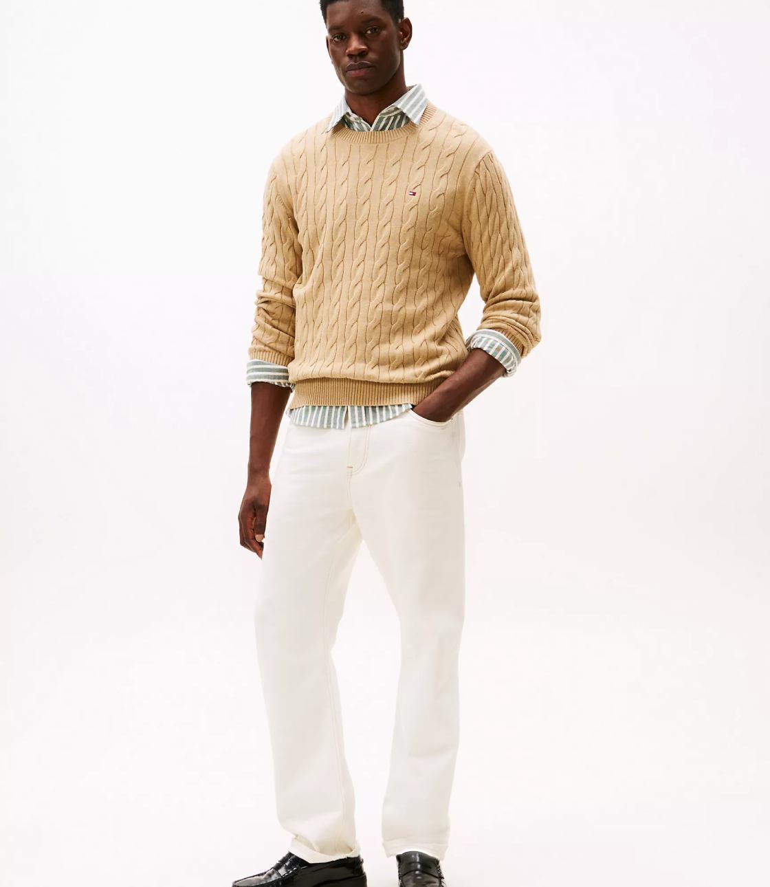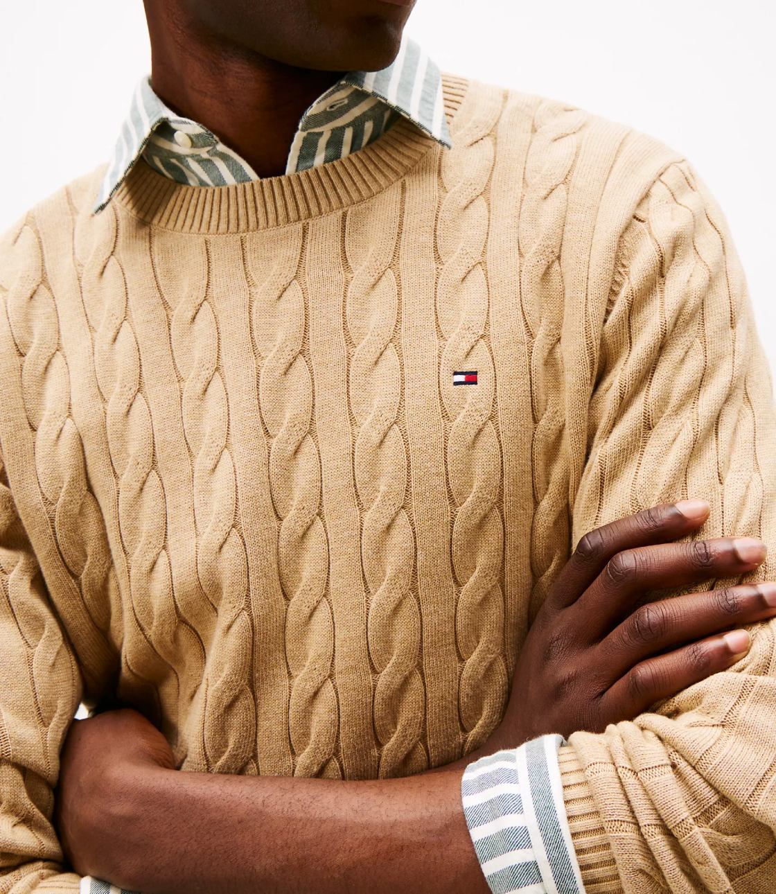 Áo len nam Tommy Hilfiger. Một món đồ vượt thời gian cho tủ quần áo mùa mới của bạn — áo len cổ tròn dệt kim từ chất liệu cotton mềm mại, dễ dàng phối lớp.
