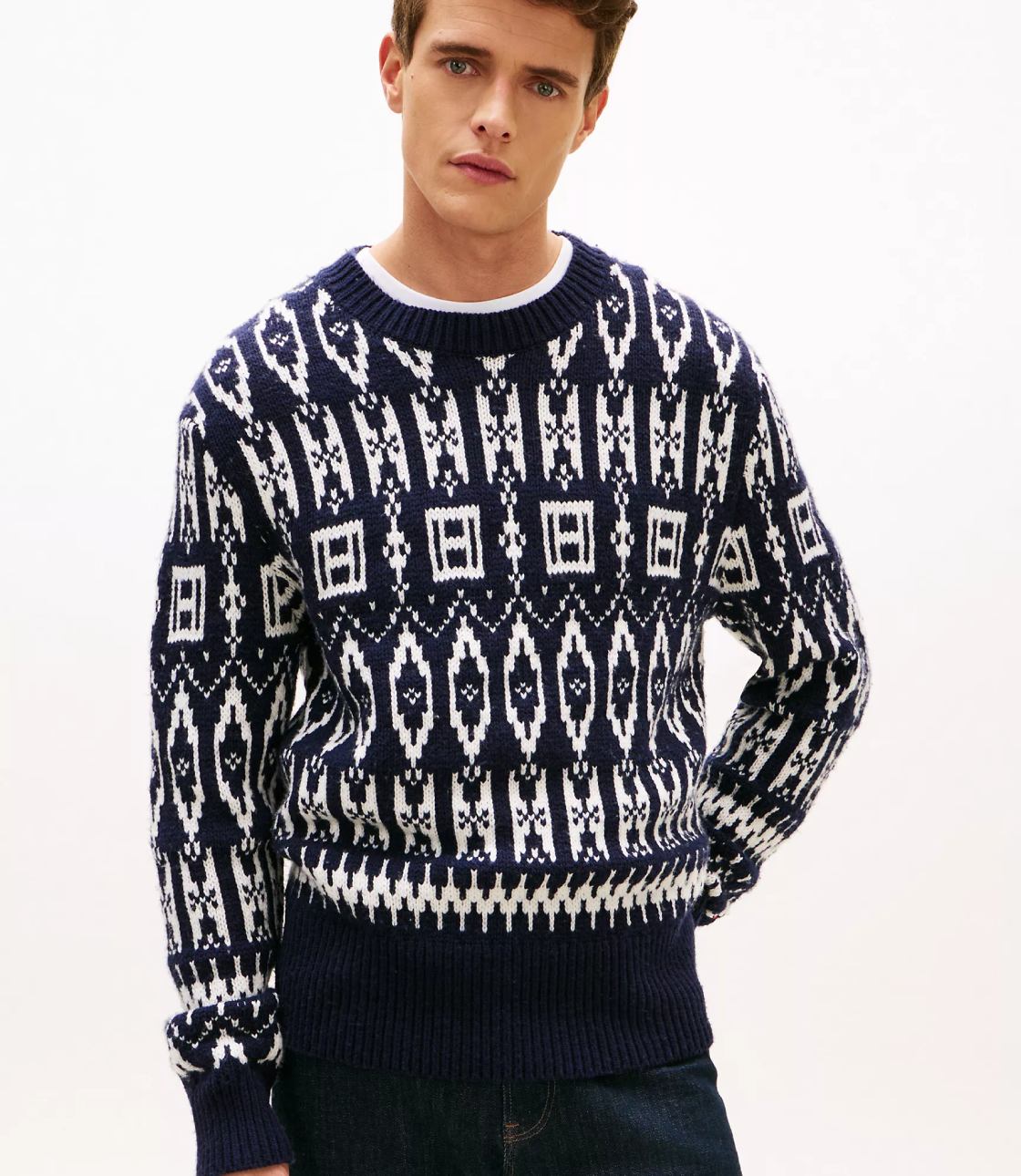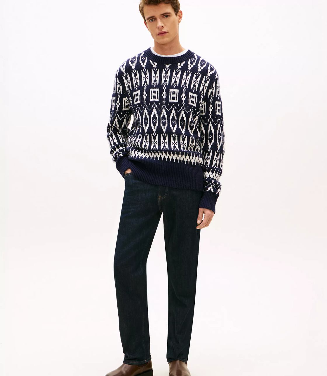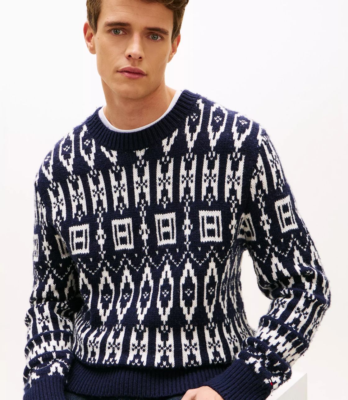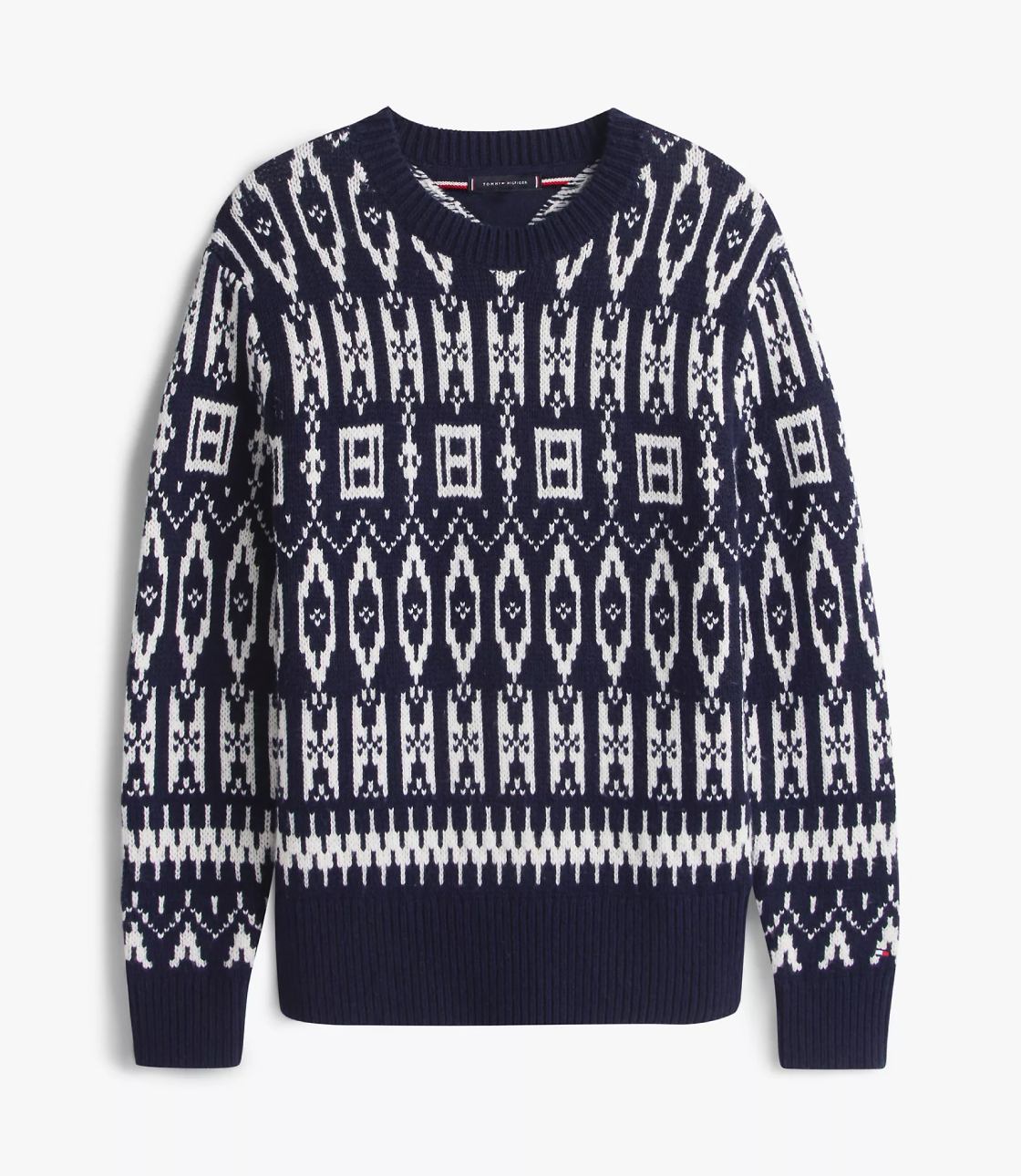 Áo len nam Tommy Hilfiger. Chiếc áo len cổ tròn này được làm từ chất liệu len pha trọng lượng trung bình, mang lại cả sự ấm áp và thoải mái. Lấy cảm hứng từ truyền thống ngày lễ, áo có họa tiết Fair Isle với logo quốc kỳ được tích hợp vào thiết kế hình học cổ điển.