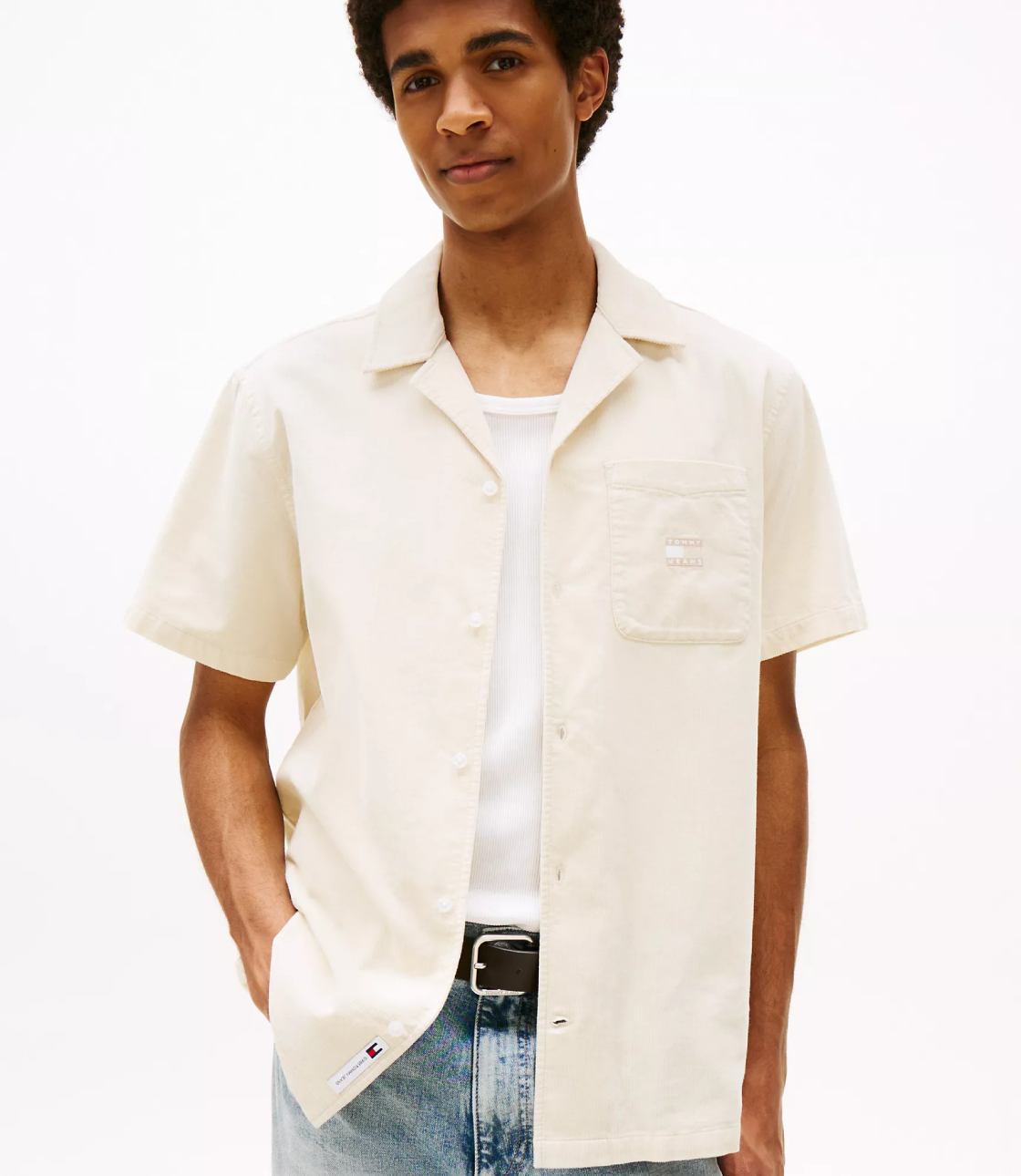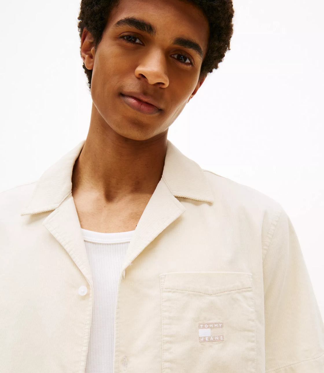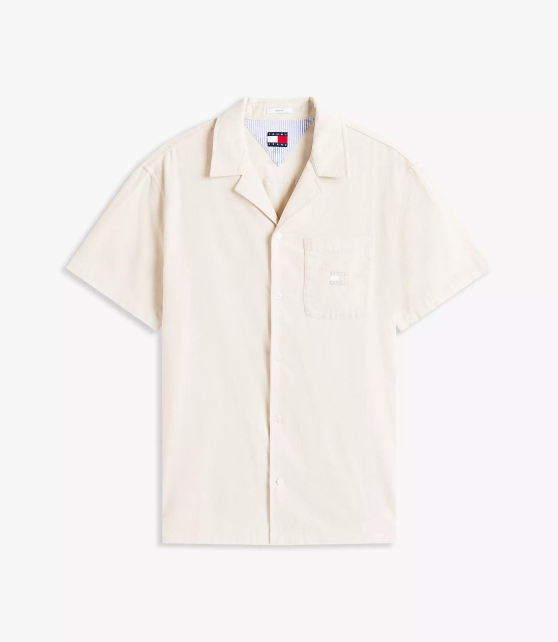 Sơ mi vải nhung gân với màu kem đơn giản nhưng bắt mắt sẽ khiến bạn trở nên thu hút hơn. Phom Regular Fit suông dễ mặc. Trên áo có thêu logo thương hiệu chuẩn nét.
