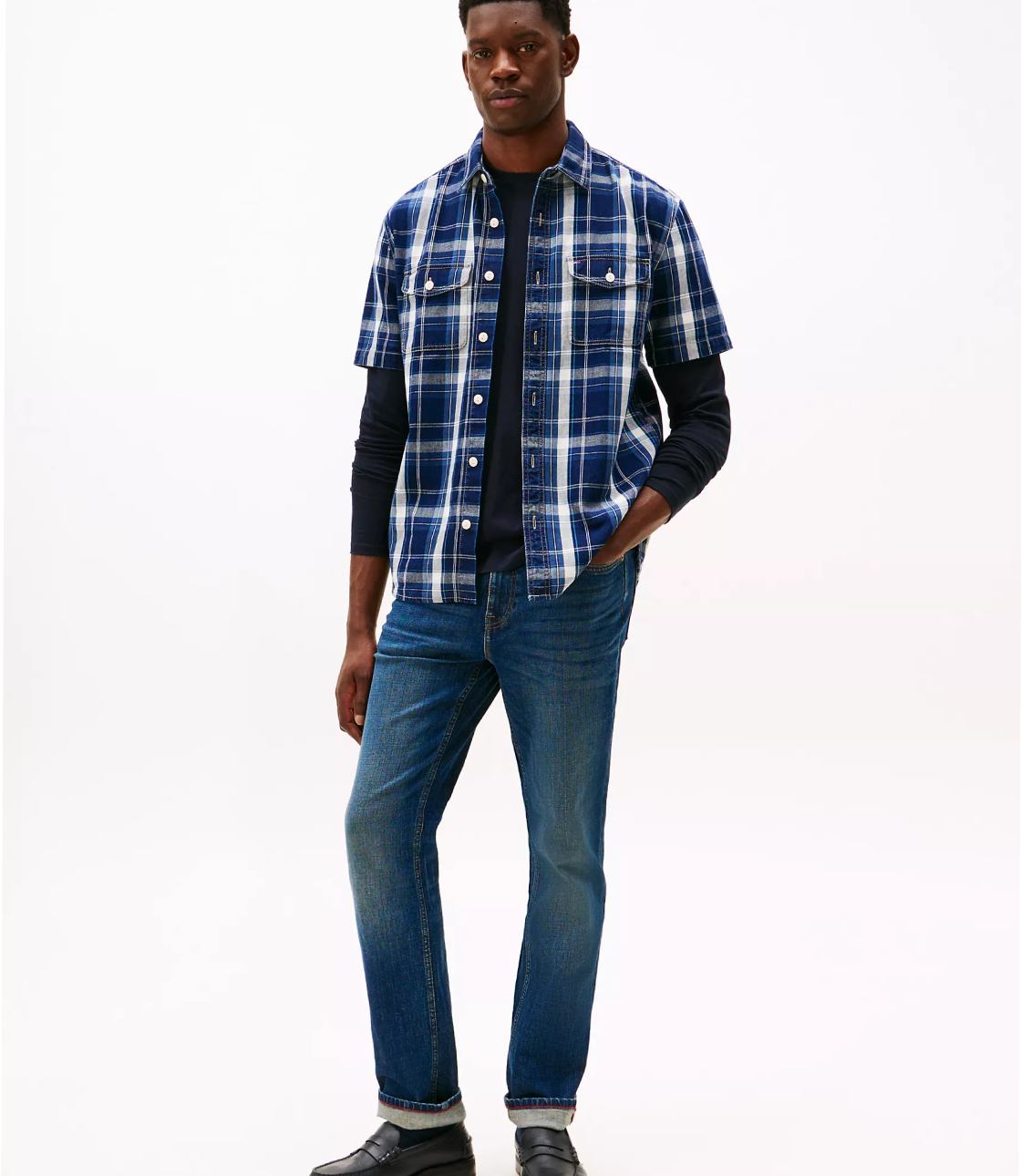 Sơ mi vải Jeans phối màu caro thời trang sẽ khiến bạn trở nên thu hút hơn. Phom Regular Fit suông dễ mặc. Trên áo có thêu logo thương hiệu chuẩn nét.