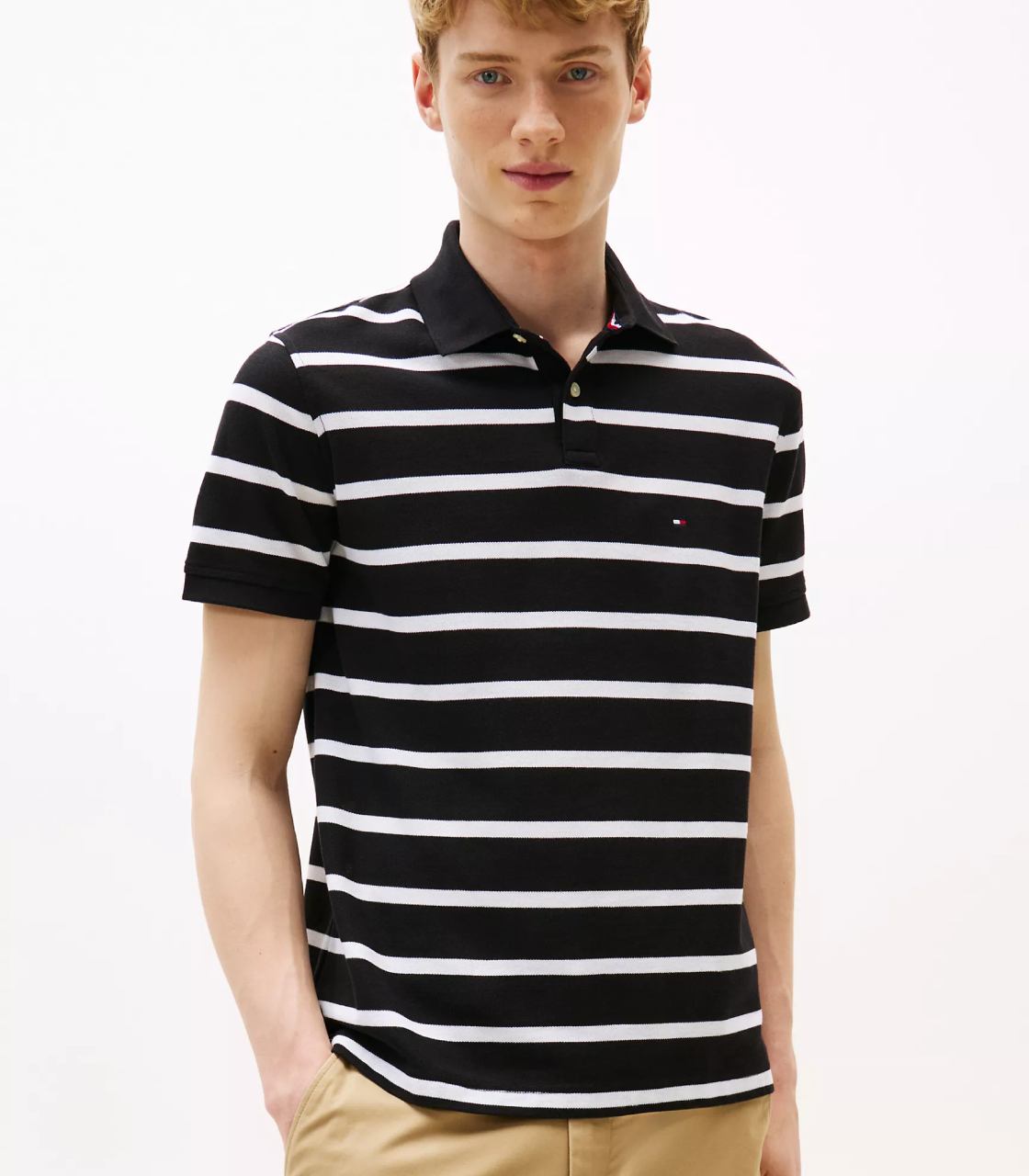 Polo Tommy Hilfiger kiểu dáng Regular Fit suông theo cơ thể , logo hãng thêu trên ngực áo. Với thiết kế sọc ngang áo đơn giản, trẻ trung năng động.