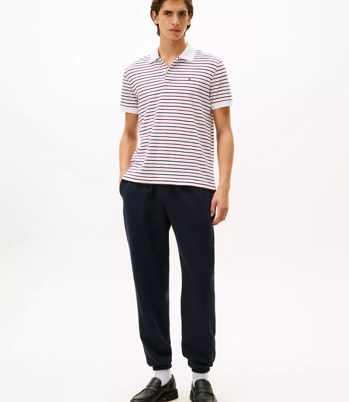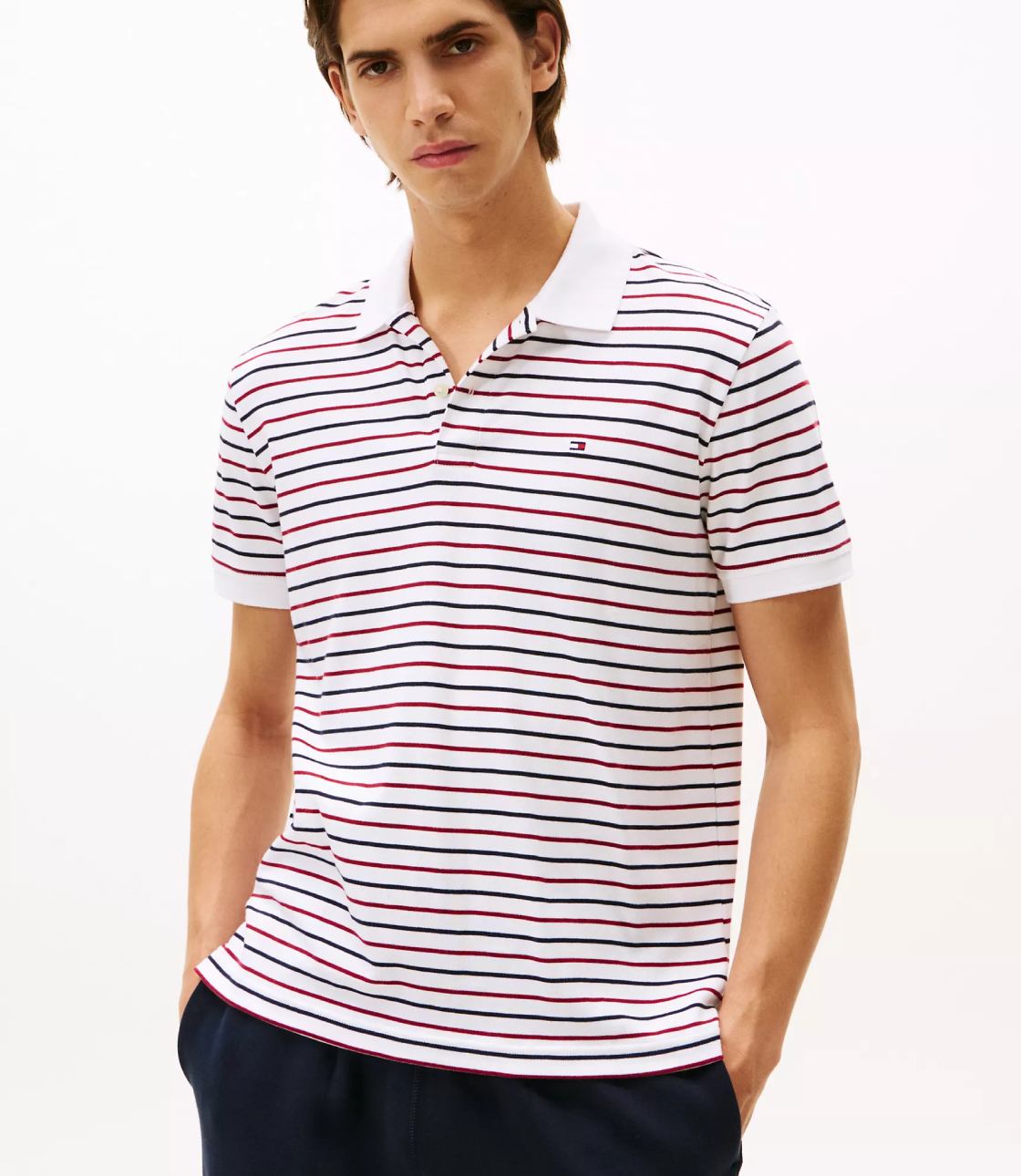 Áo polo nam Tommy Hilfiger. Mang đến một diện mạo mới mẻ cho truyền thống, áo polo cotton mềm mại của chúng tôi được làm từ chất liệu dệt kim đôi chắc chắn. Chất vải dày dặn, hai mặt này kết hợp độ bền cao với cảm giác mềm mại, mượt mà. Họa tiết sọc tạo nên sự khác biệt cho phiên bản này so với màu trơn thông thường.