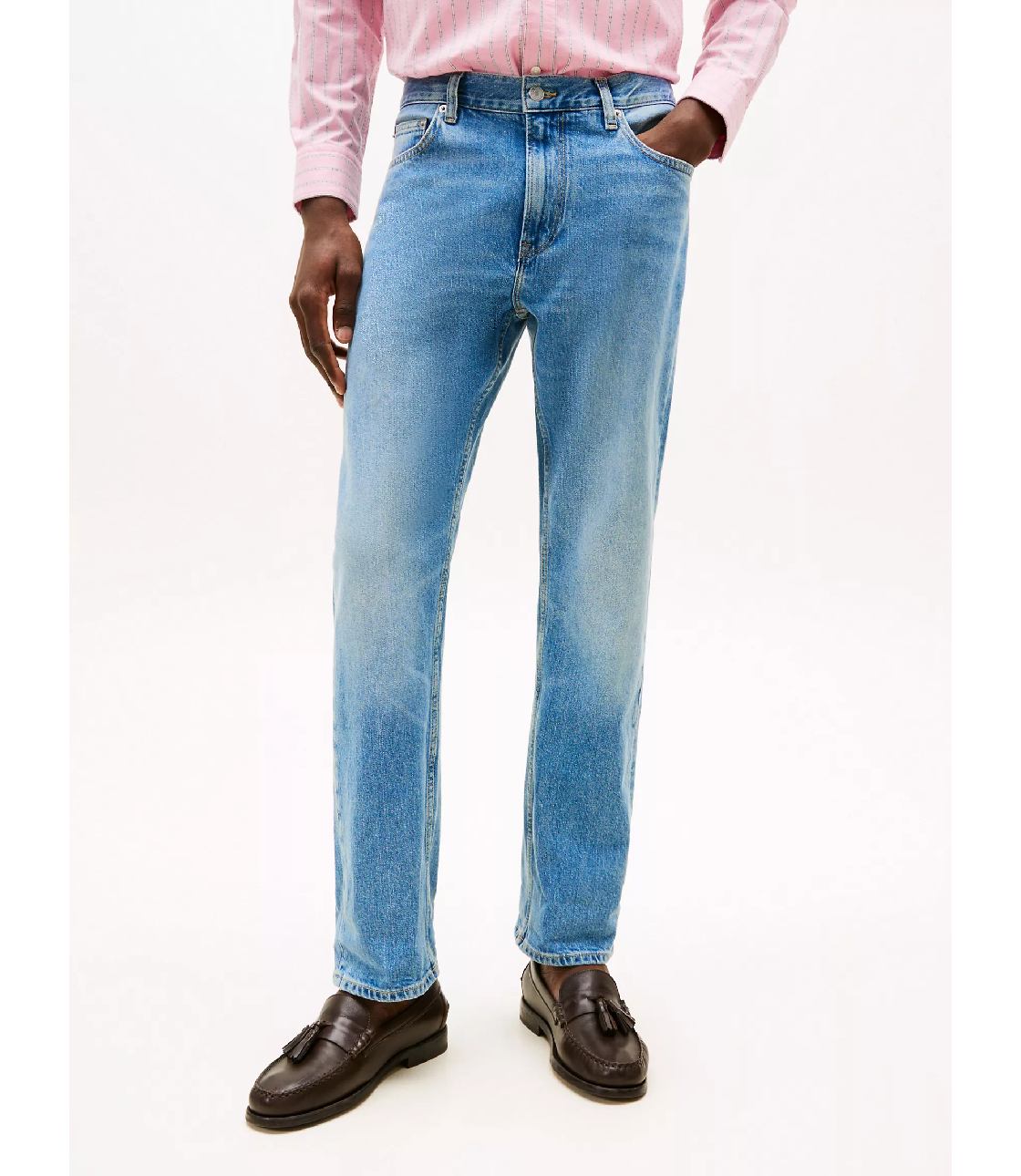 Quần jean nam Tommy Hilfiger. Để có vẻ ngoài vượt thời gian, hãy chọn chiếc quần jean dáng Regular fit, màu xanh nhạt này, được thiết kế với hiệu ứng phai màu nhẹ nhàng và độ co giãn vừa phải tạo cảm giác thoải mái.